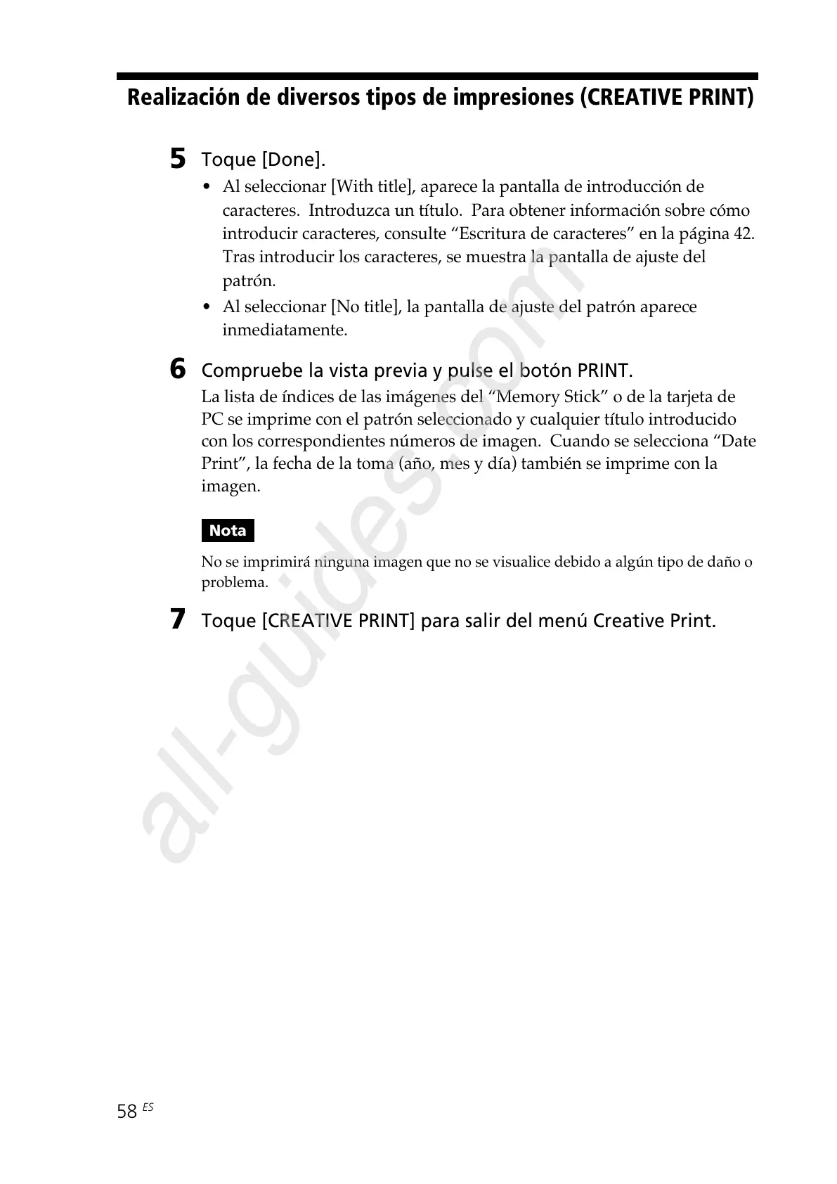 Toque [CREATIVE PRINT] para salir del menú Creative Print.