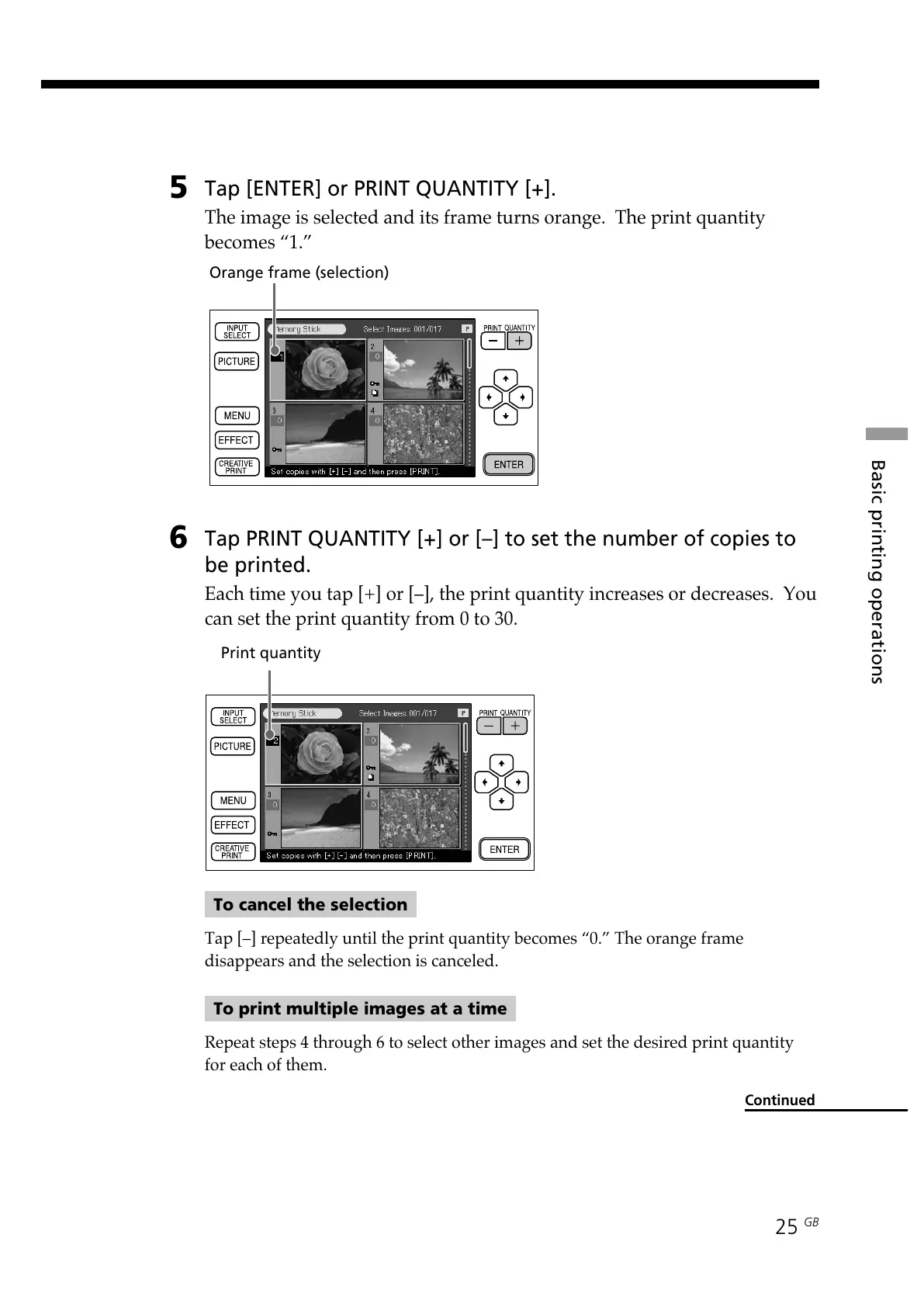 Repeat steps 4 through 6 to select other images and set the desired print quantity