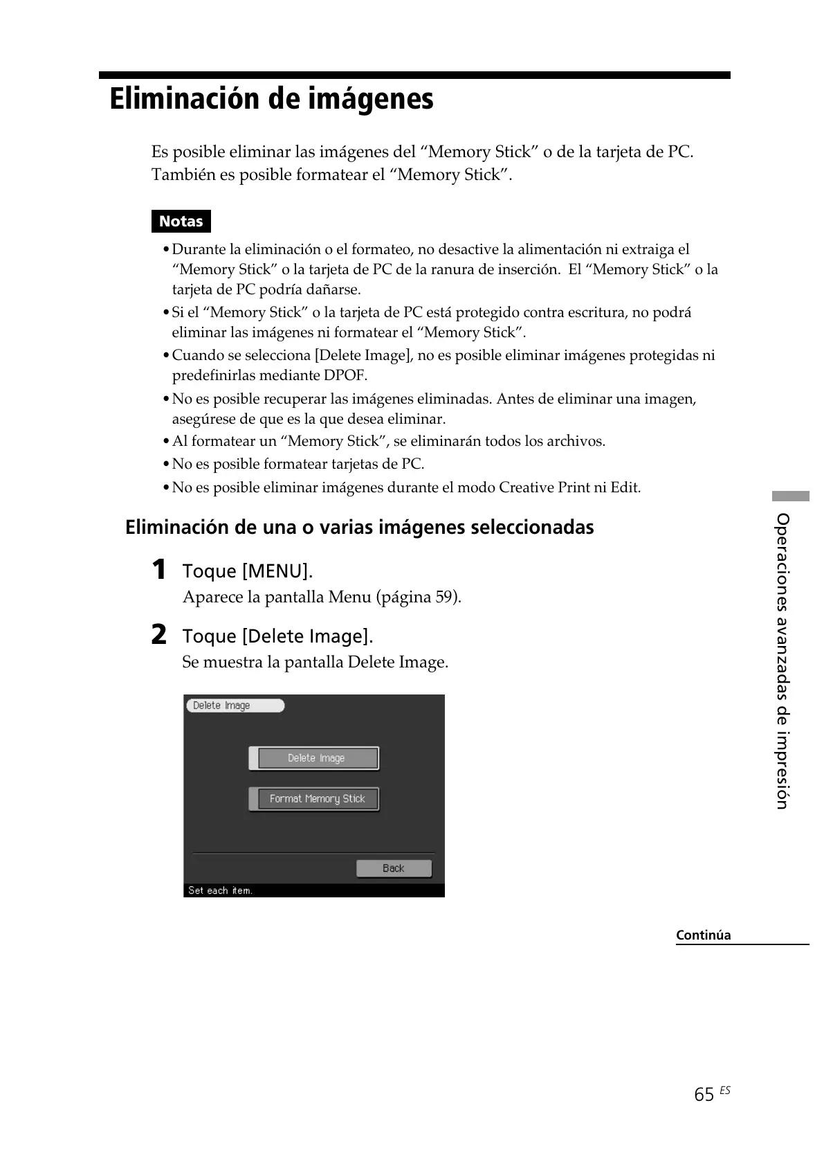 eliminar las imágenes ni formatear el “Memory Stick”.