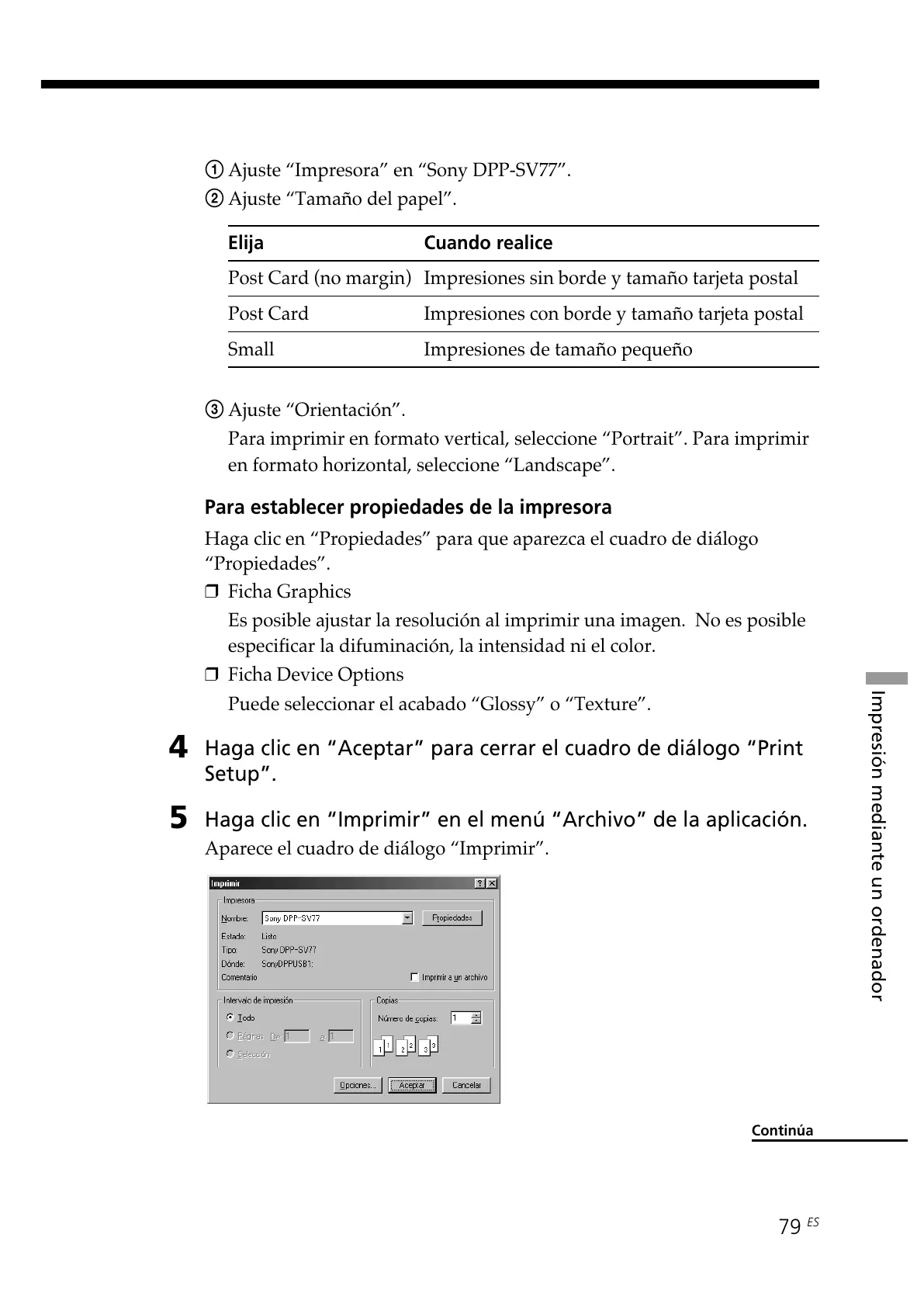 1 Ajuste “Impresora” en “Sony DPP-SV77”.