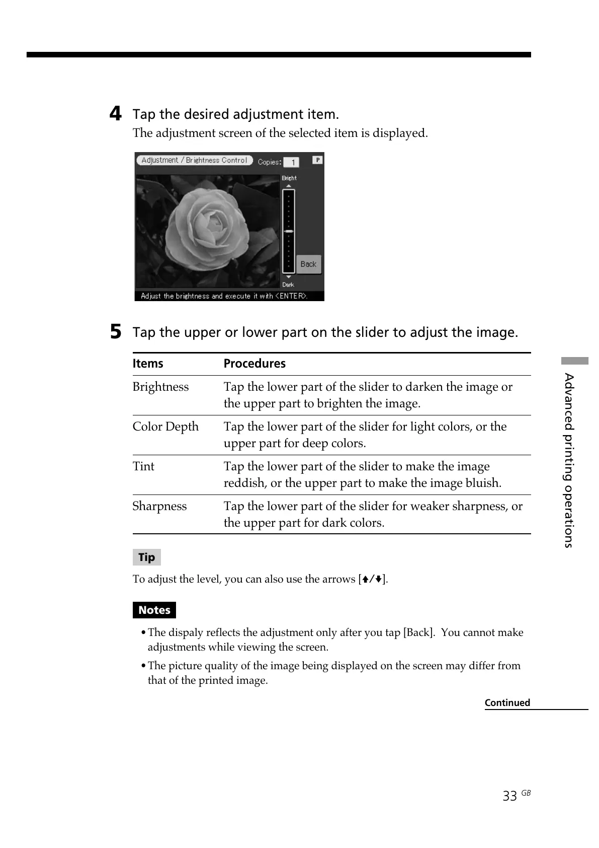 •The dispaly reflects the adjustment only after you tap [Back]. You cannot make