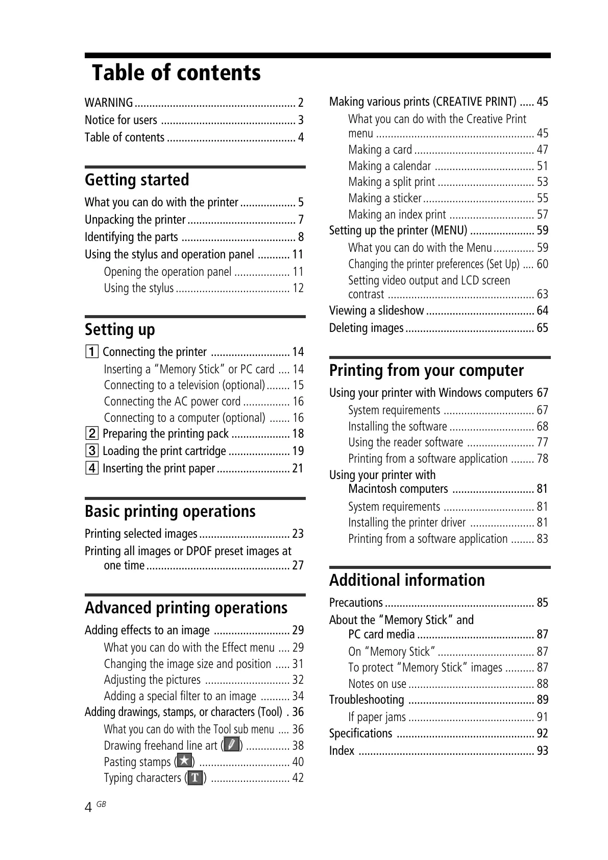 Making various prints (CREATIVE PRINT) ..... 45