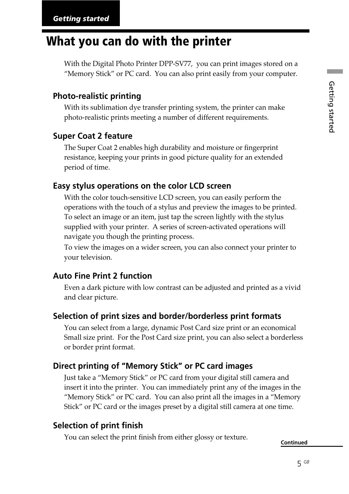With the Digital Photo Printer DPP-SV77, you can print images stored on a