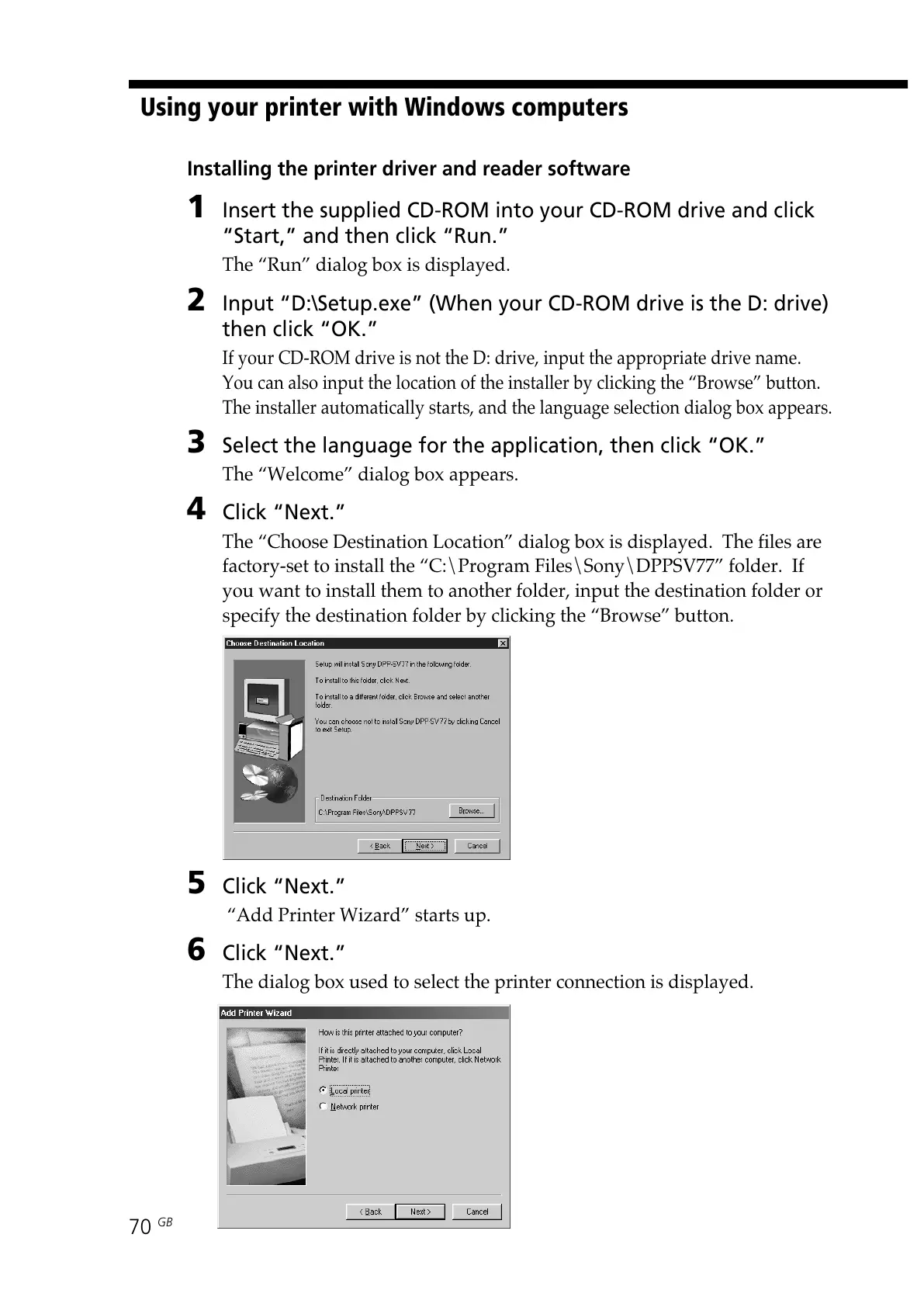 factory-set to install the “C:\Program Files\Sony\DPPSV77” folder. If