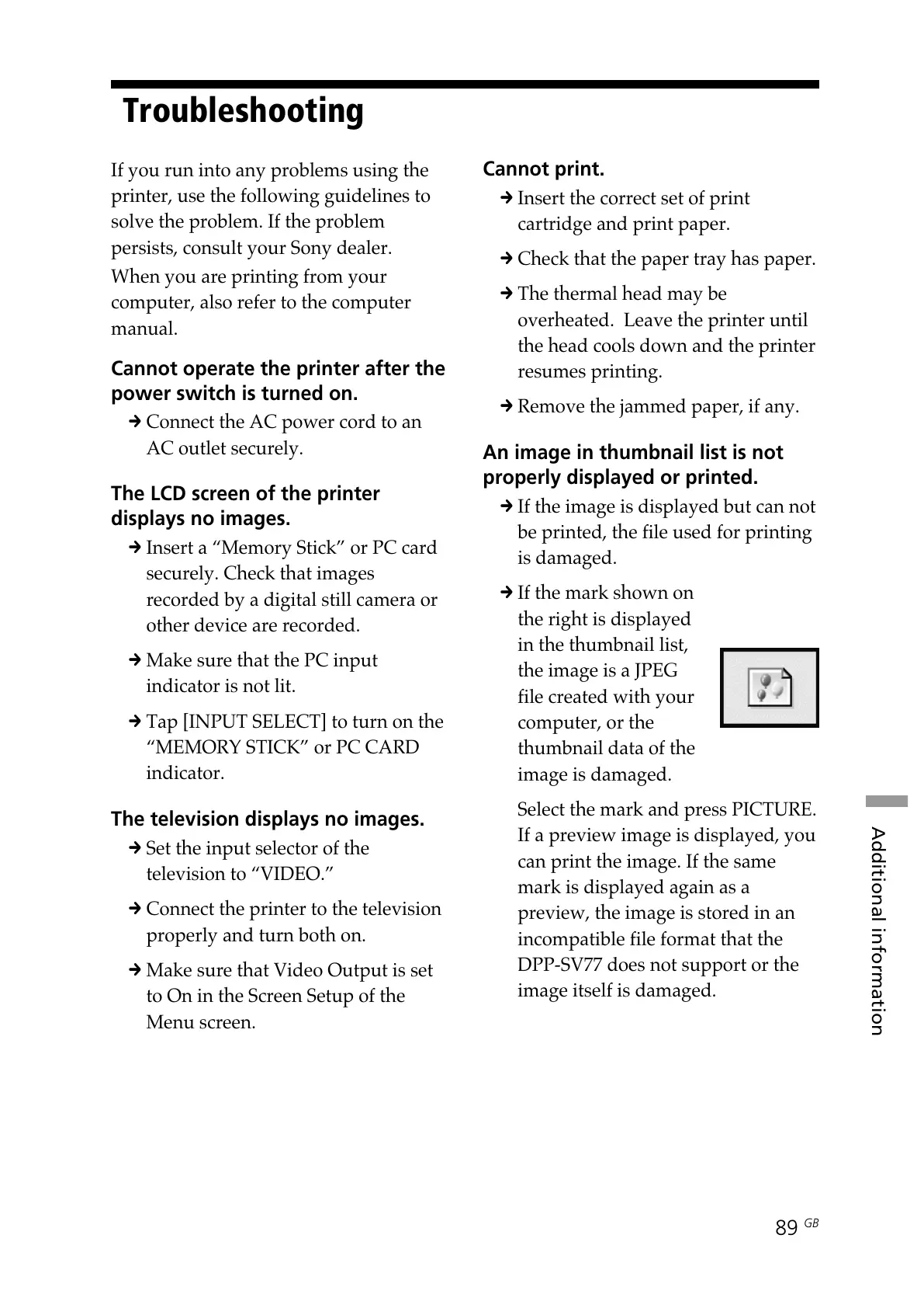 persists, consult your Sony dealer.