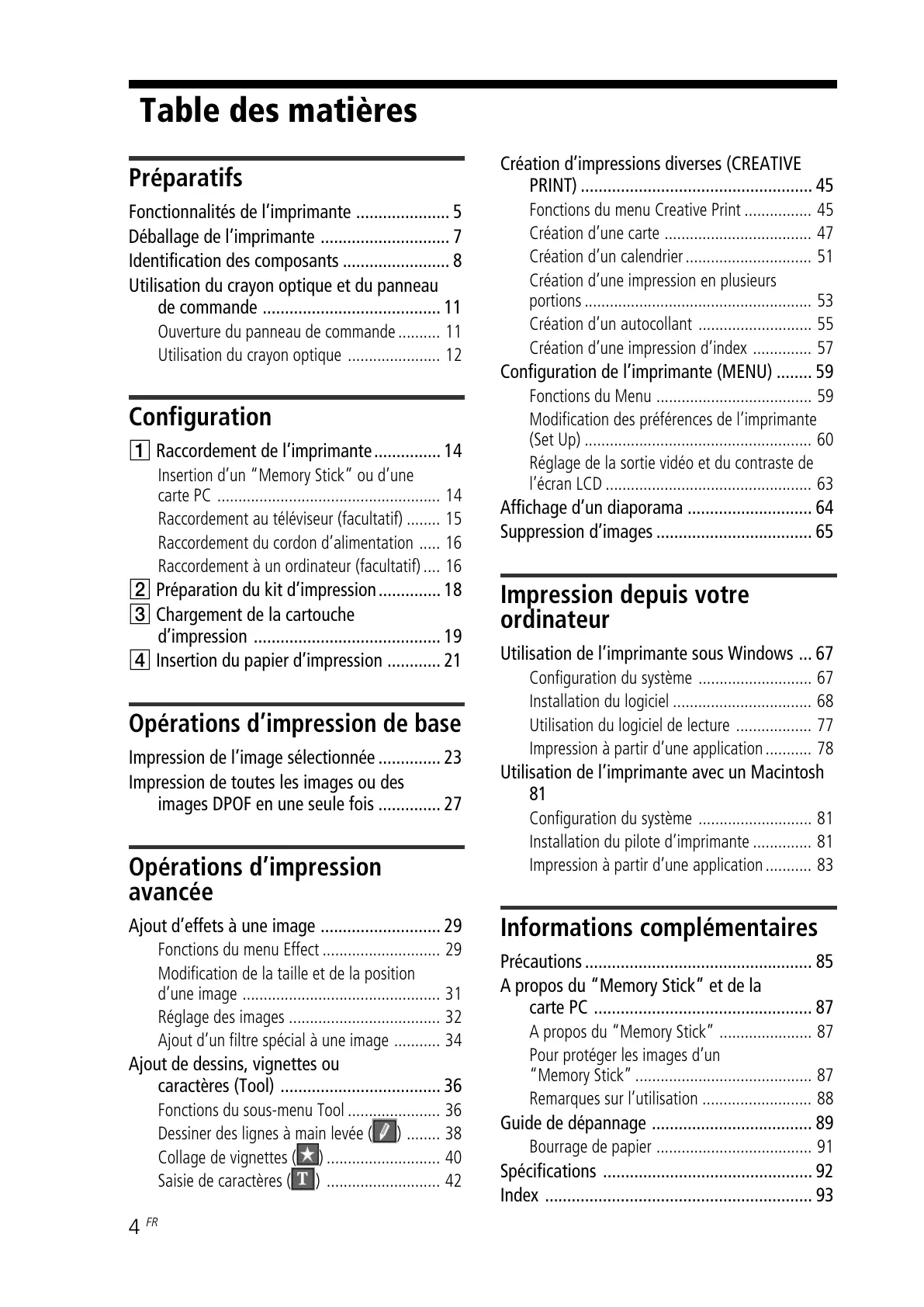 Utilisation de l’imprimante sous Windows ... 67