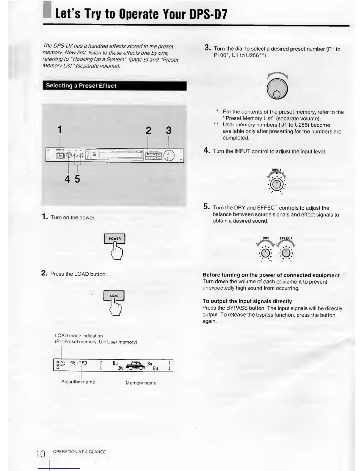 Sony DPS-D7 - Chapter 2 Operation at a Glance; Dps-D7; Selecting a Preset Effect