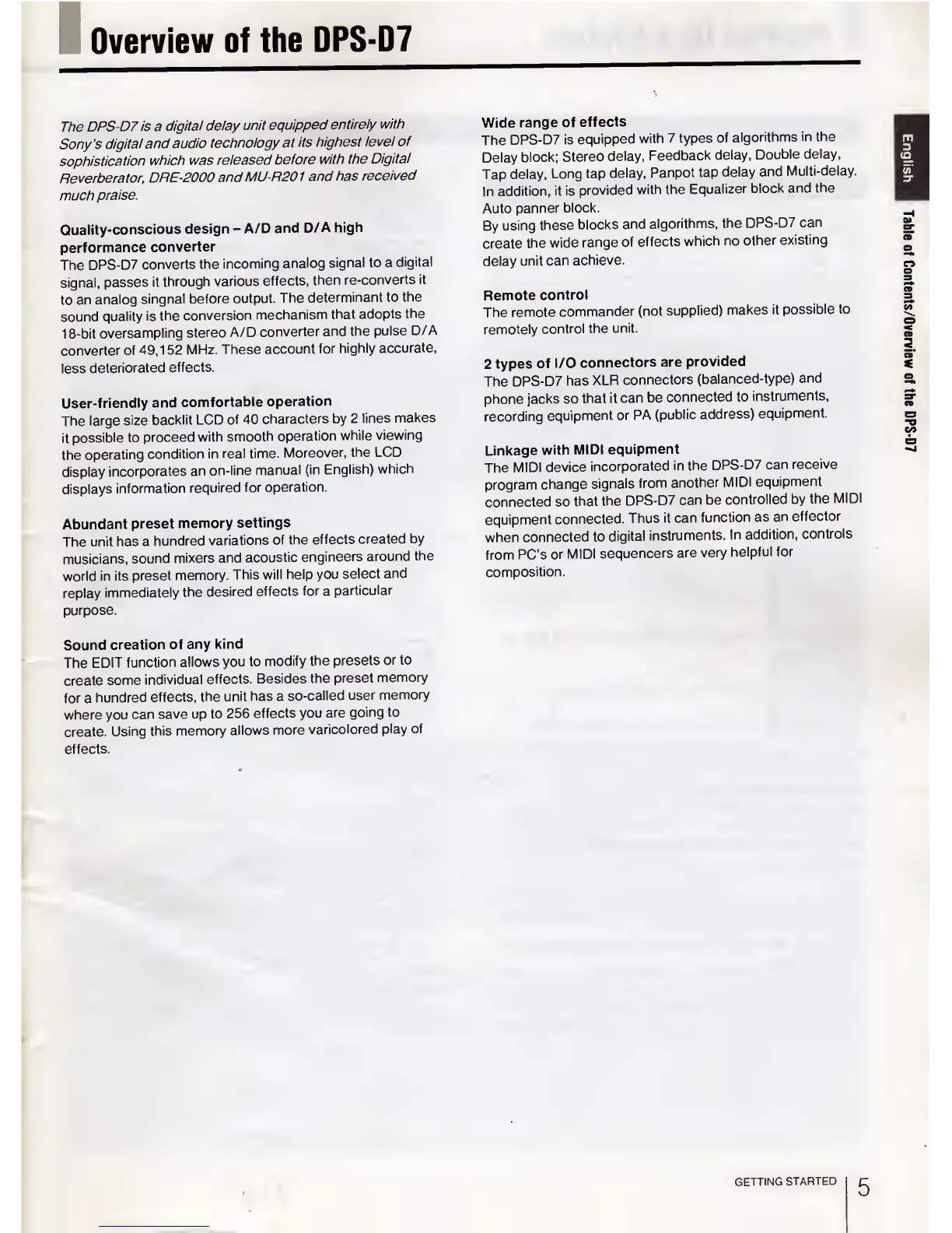 Sony DPS-D7 - Getting Started; Dps-D7
