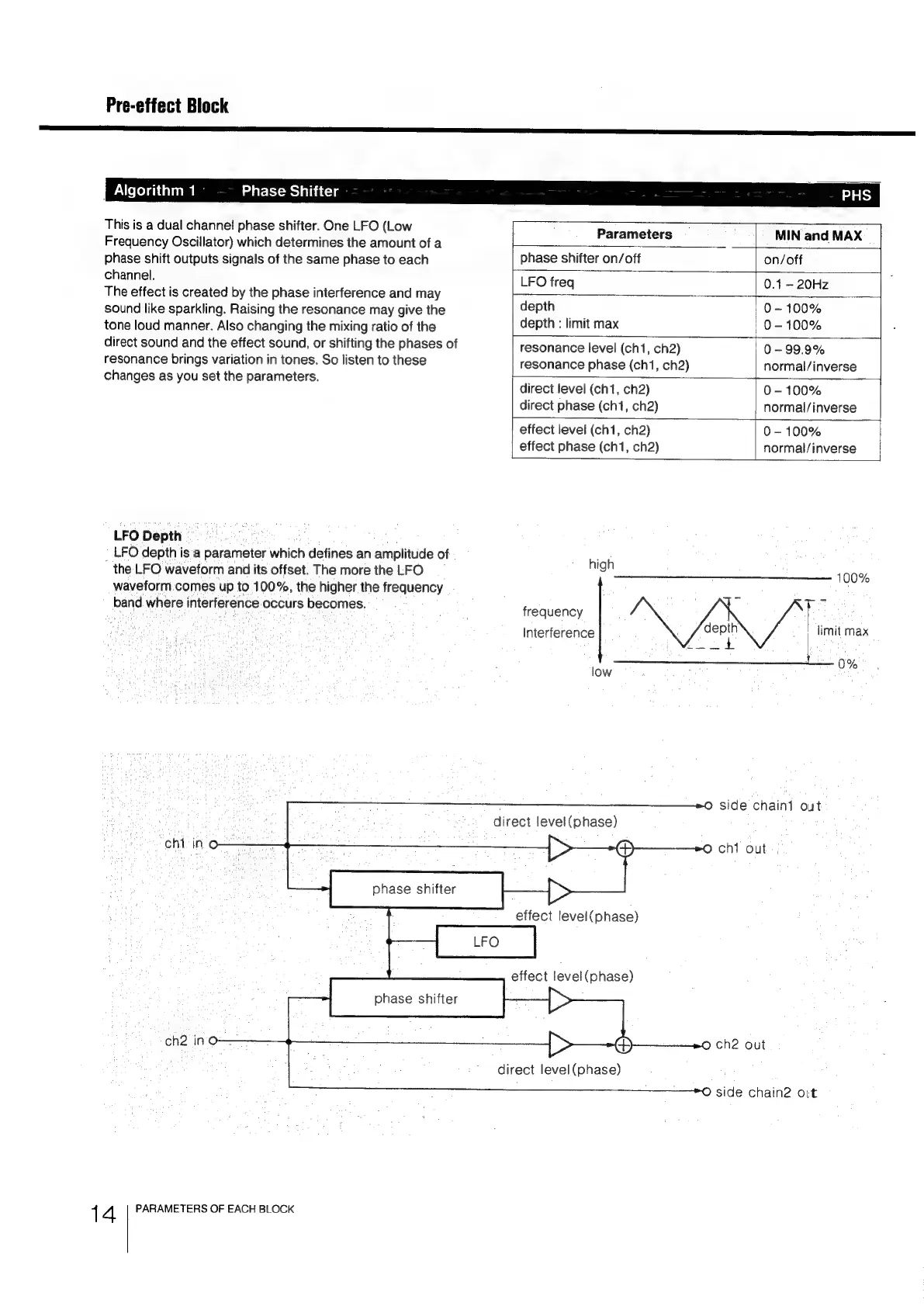 Sony DPS-R7 - Algorithm 1: Phase Shifter (PHS); Phase Shifter Effect Description