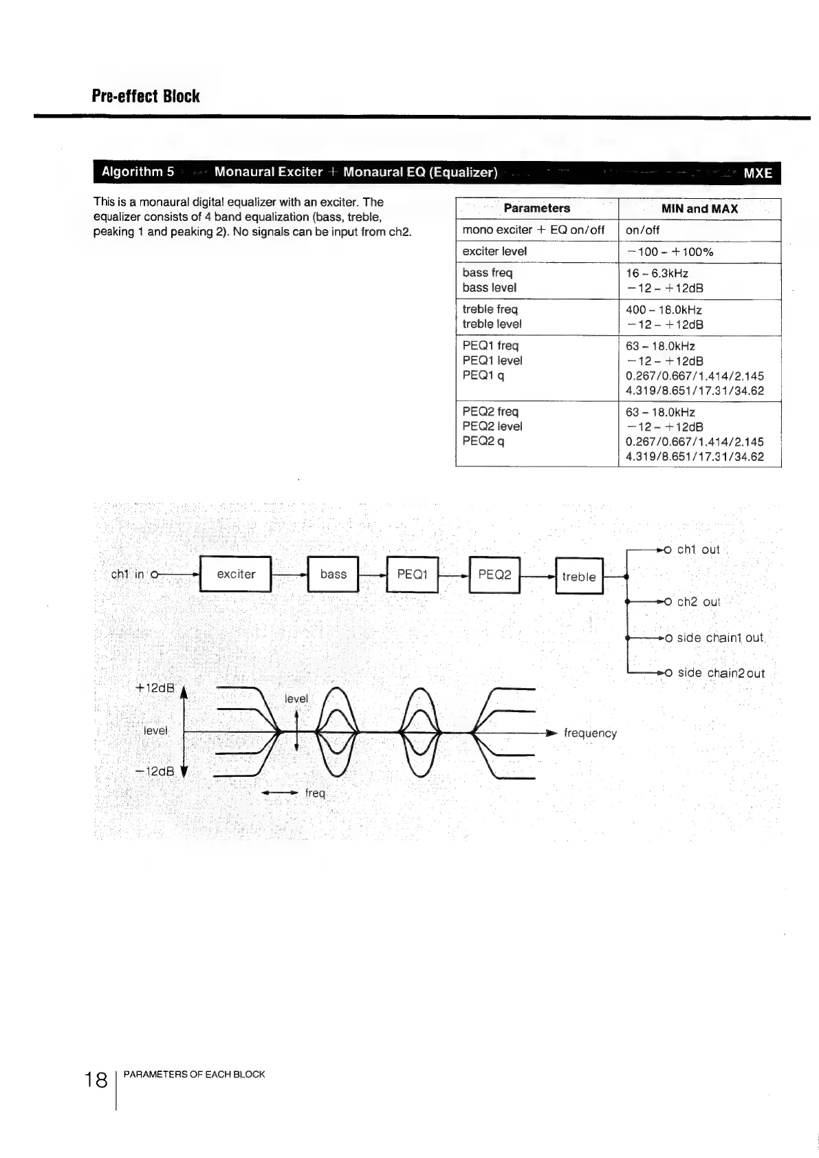 Sony DPS-R7 - Algorithm 5: Monaural Exciter + Monaural EQ (MXE); Monaural Exciter and EQ Effect Parameters