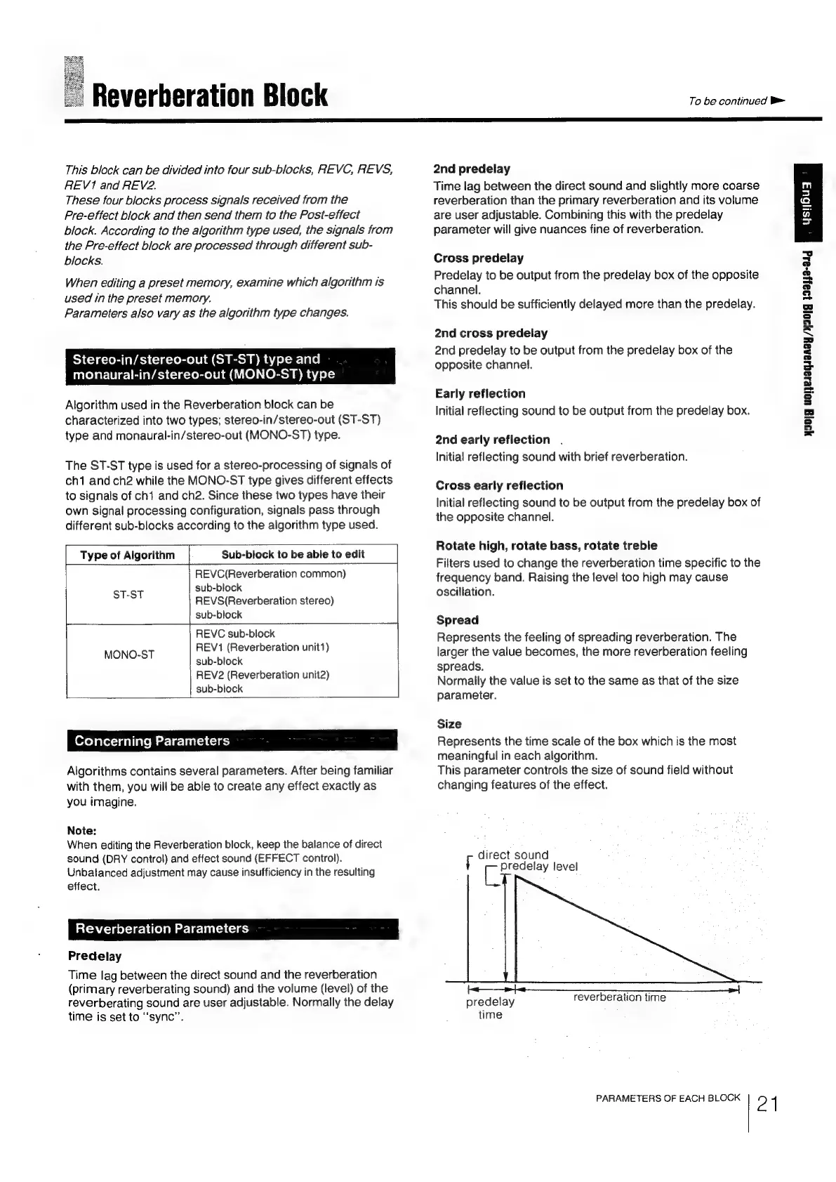 Sony DPS-R7 - Reverberation Block Functions; Reverberation Block Signal Types; Reverberation Parameter Guidance; Core Reverberation Parameters