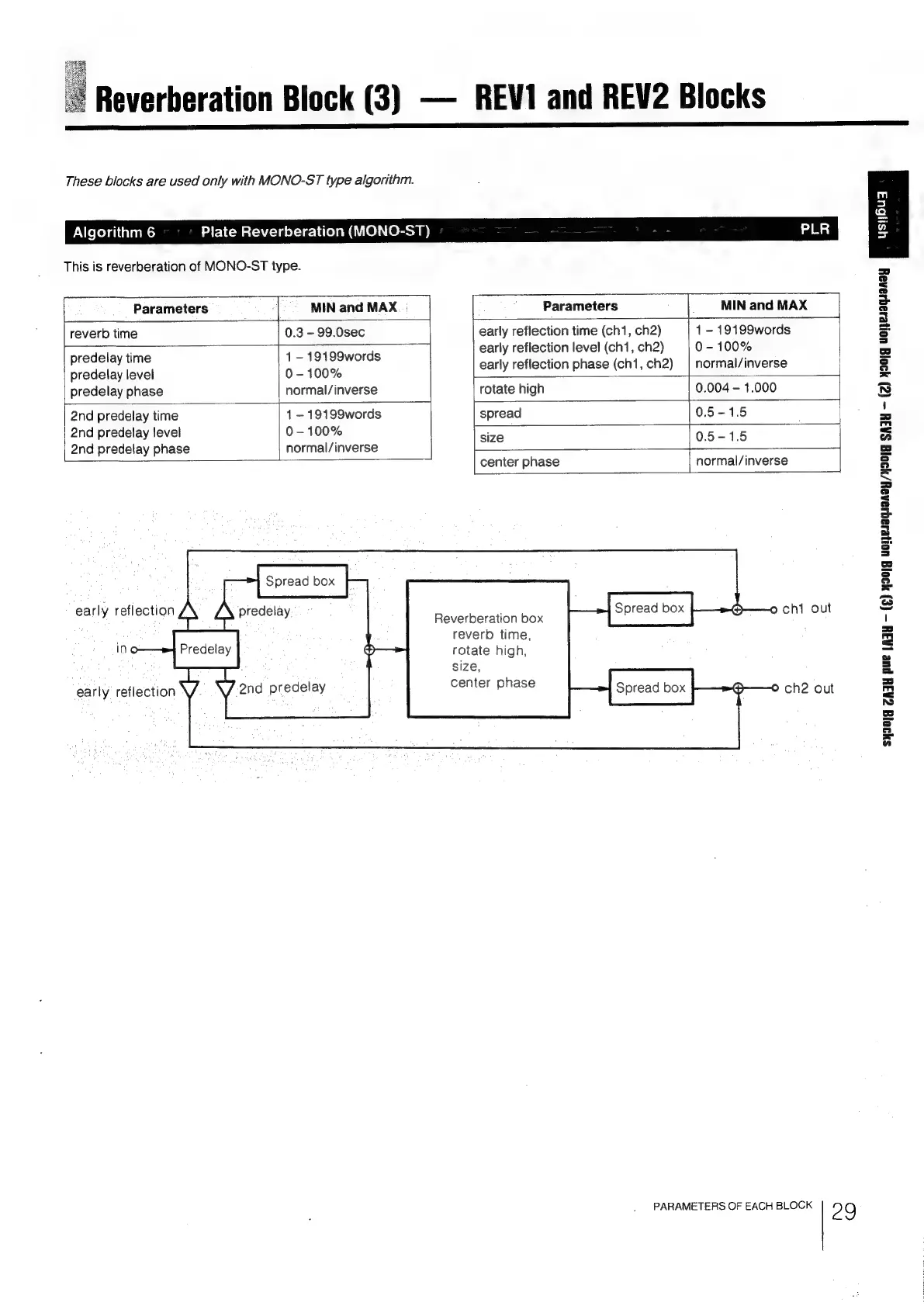 Sony DPS-R7 - REV1;REV2 Blocks: Plate Reverb (PLR); MONO-ST Plate Reverb (PLR) Parameters
