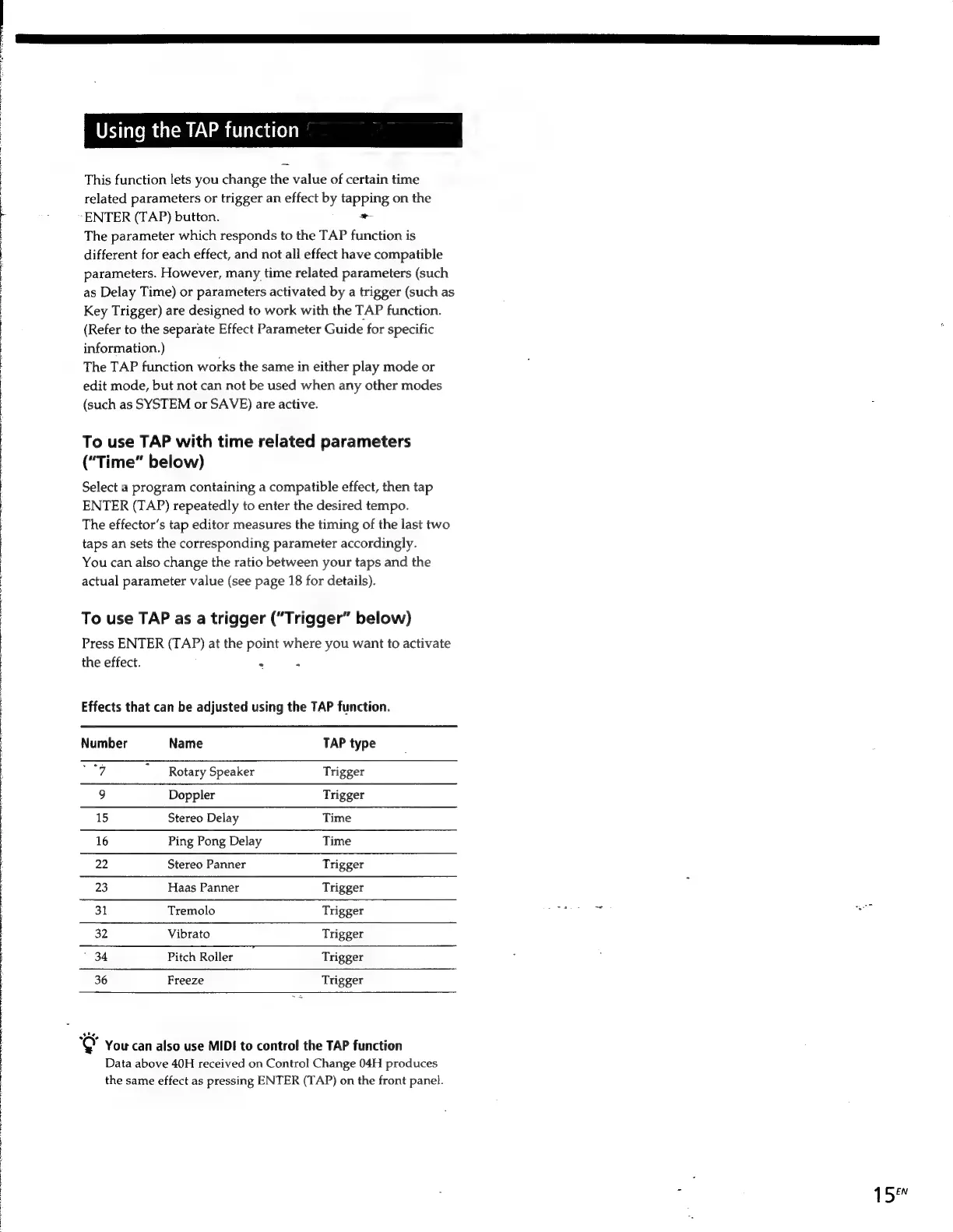 Sony DPS-V55 - Using the TAP Function; TAP Function for Tempo and Triggers