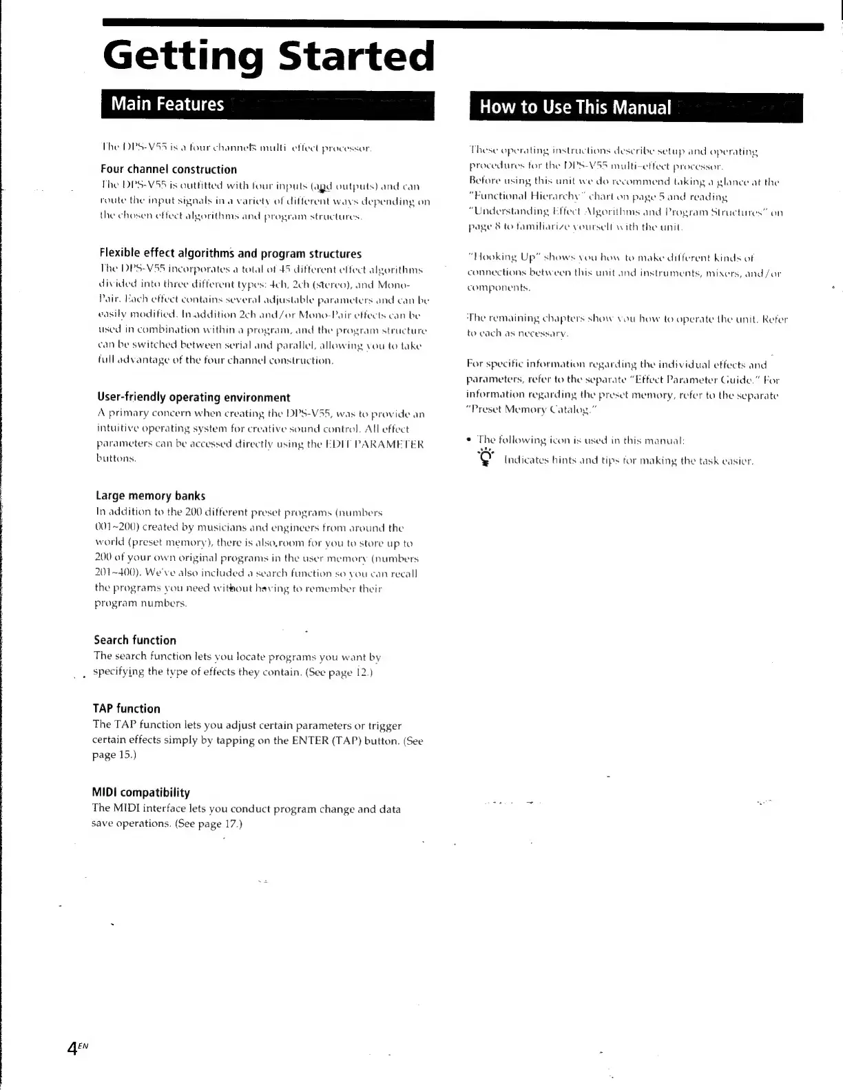 Sony DPS-V55 - Getting Started: Unit Introduction; Key Features of the DPS-V55