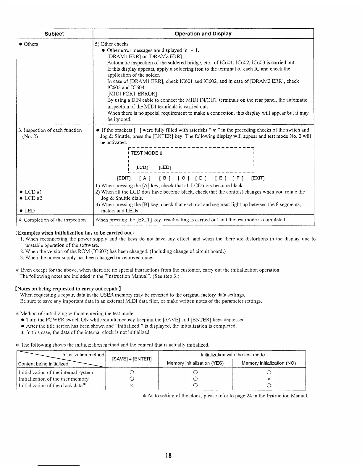 * Even except for the above, when there are no special instructions from the customer, carry out the initialization operation.