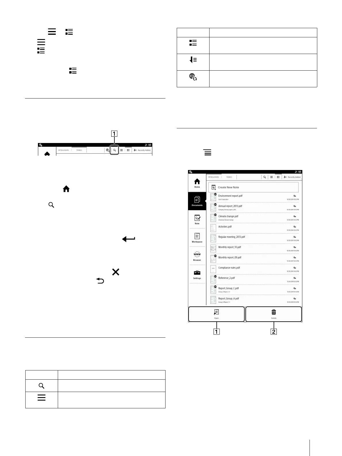 displays document lists with file type icons.