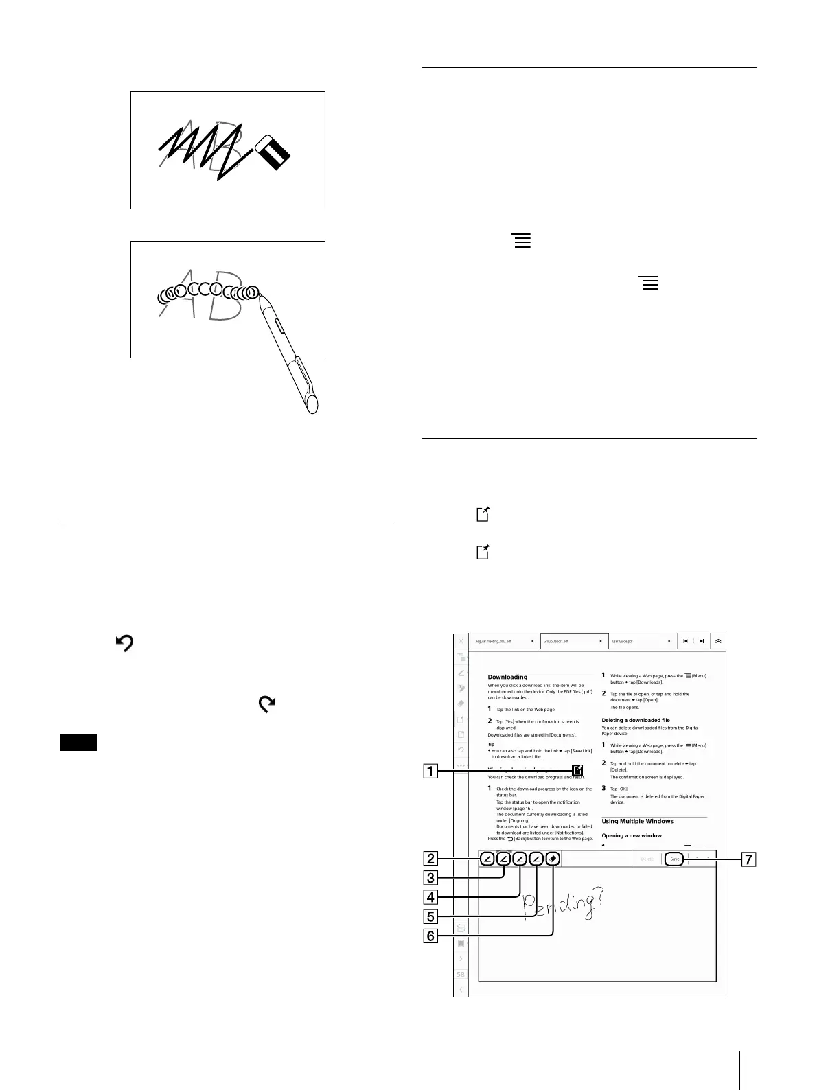 The previous operation such as handwriting or