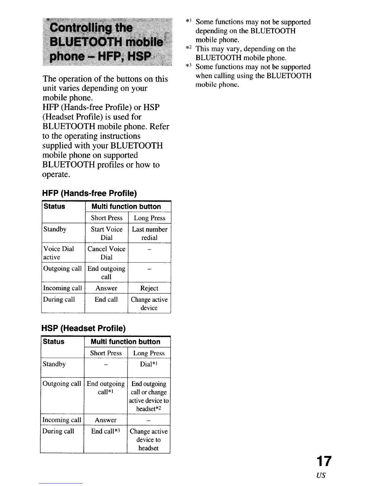 HFP (Hands-free Profile) or HSP