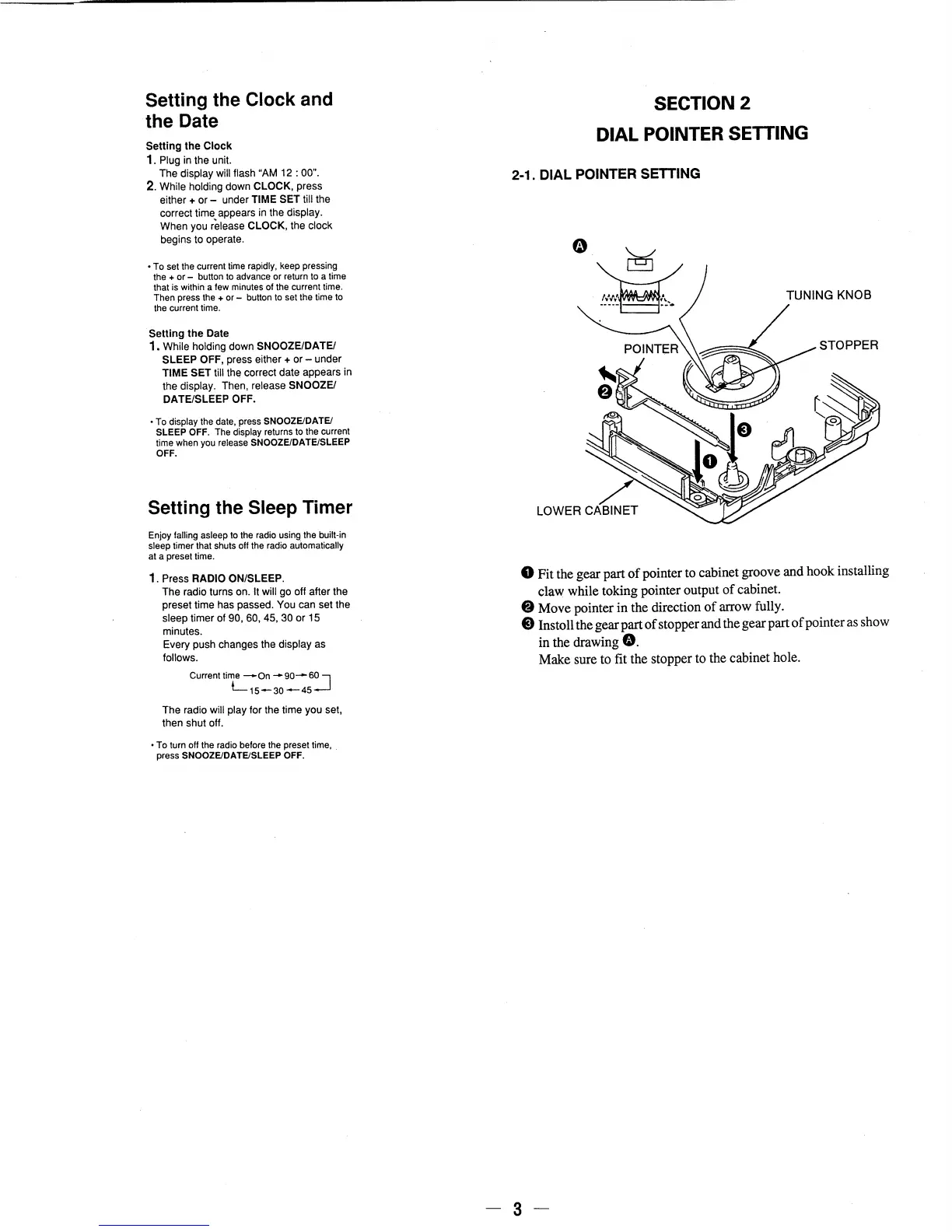 Sony DREAM MACHINE ICF-C430 - Dial Pointer Setting; Setting the Clock and the Date; Setting the Sleep Timer