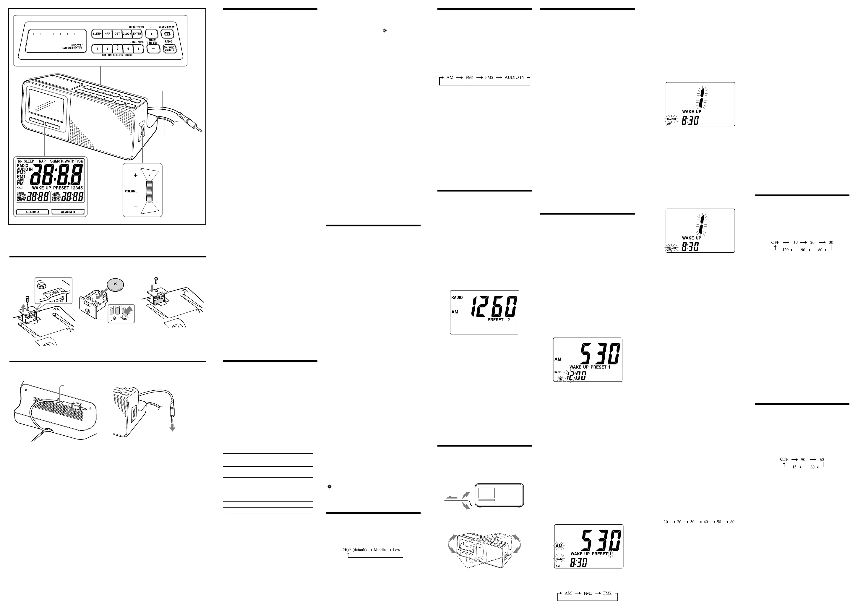 the radio, buzzer or melody alarm at the preset time.