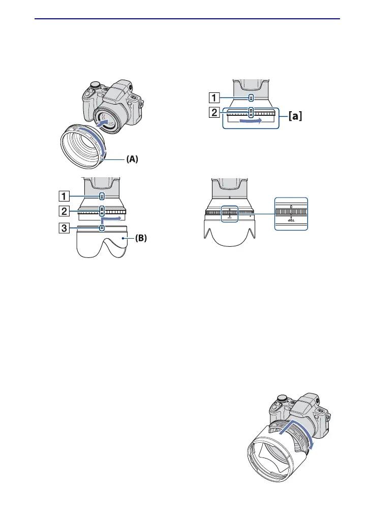 2 Gire el área indicada con [a] del anillo adaptador en la dirección de la flecha y alinee el