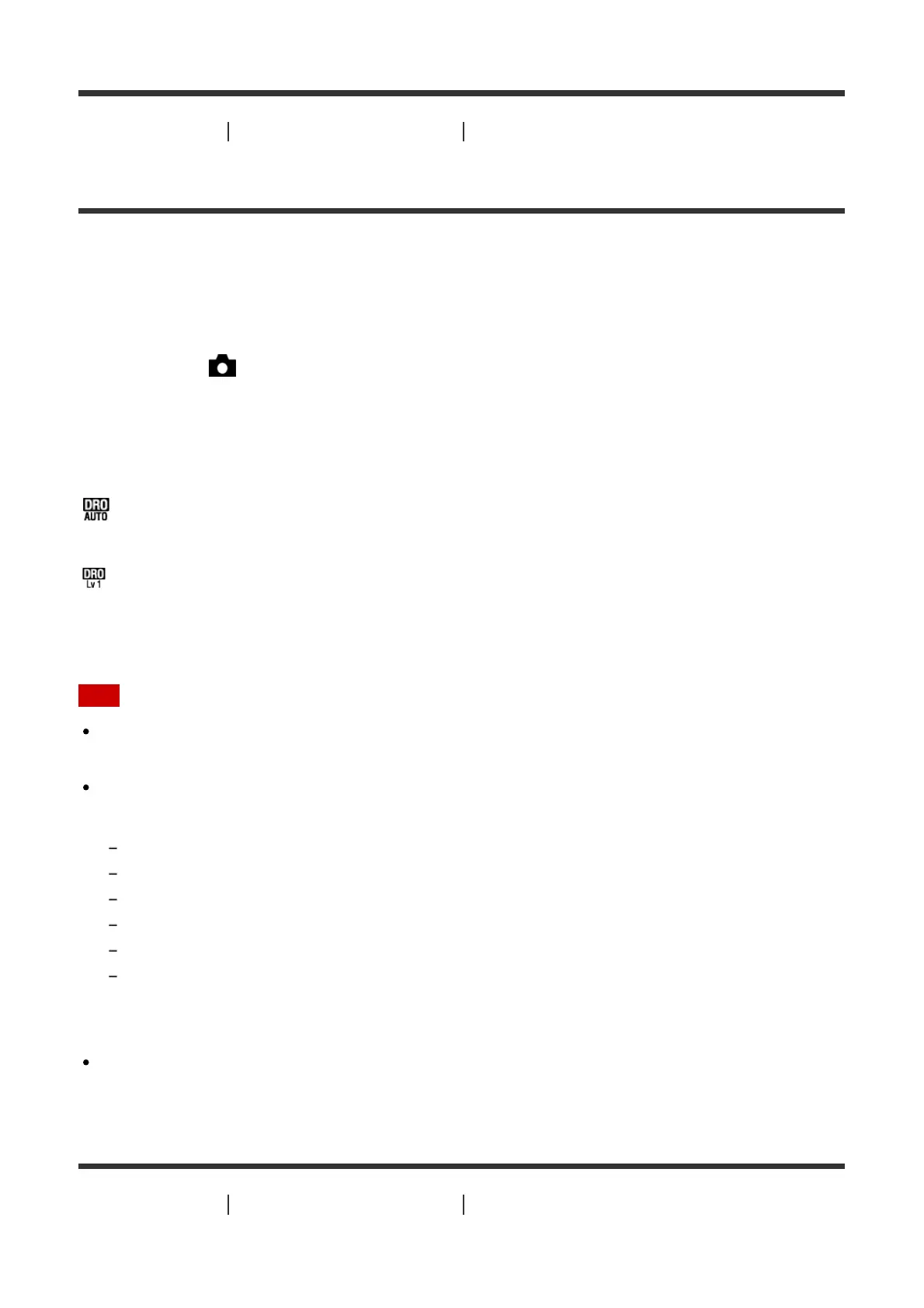 1. MENU → (Camera Settings) → [DRO/Auto HDR] → [D-Range Opt.].