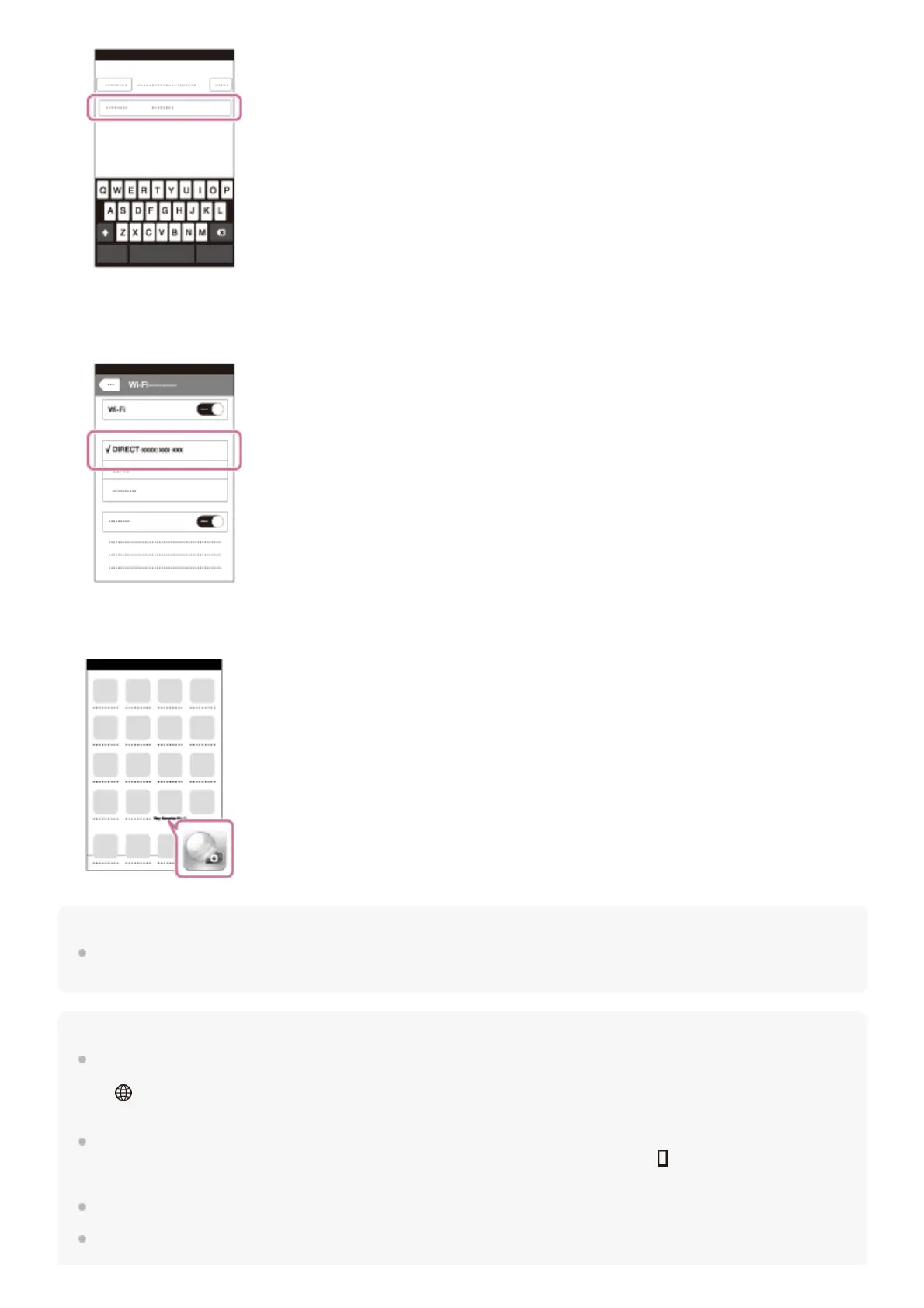 Once the QR Code has been read, the camera’s SSID (DIRECT-xxxx) and password are registered to the iPhone or iPad. This