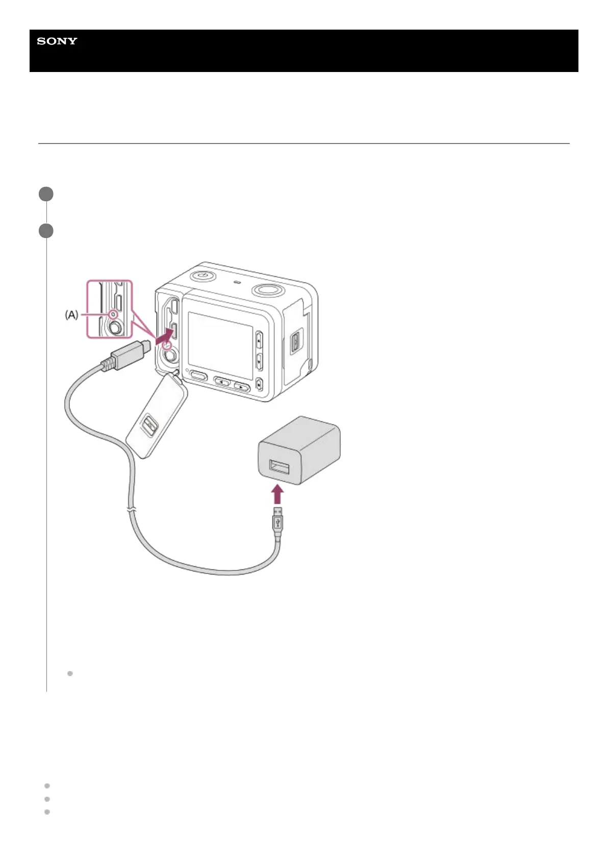 Connect the camera with the battery pack inserted to the AC Adaptor (supplied) using the micro USB cable