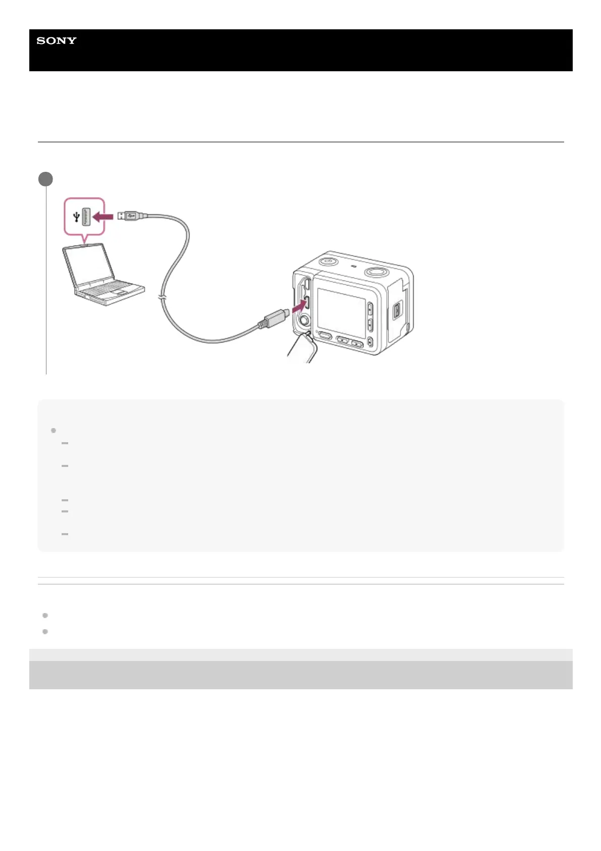 The battery pack can be charged by connecting the camera to a computer using a micro USB cable.