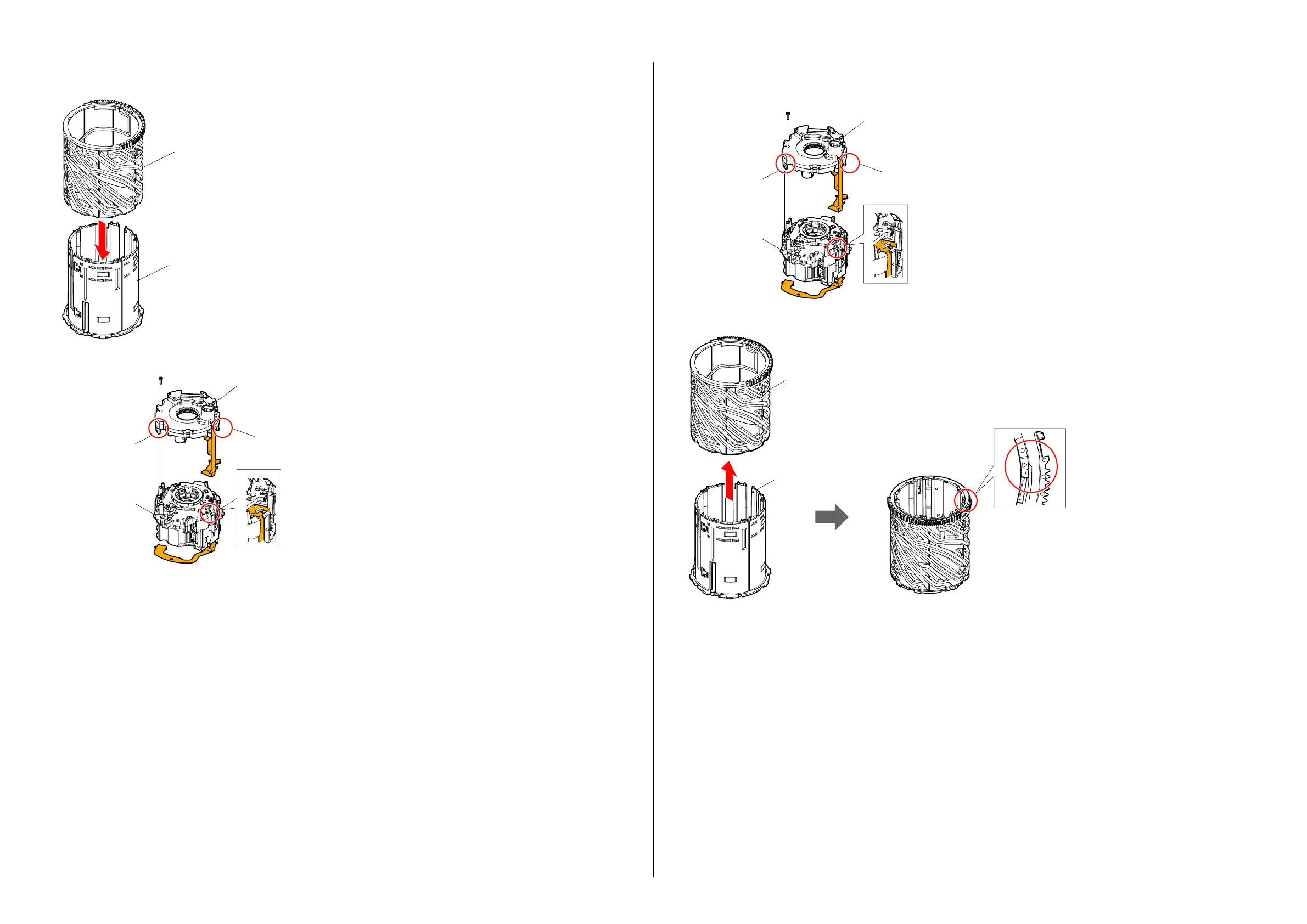 2. Install the Straight Tube Block Assy to the Cam Tube and set the △ mark on the Straight