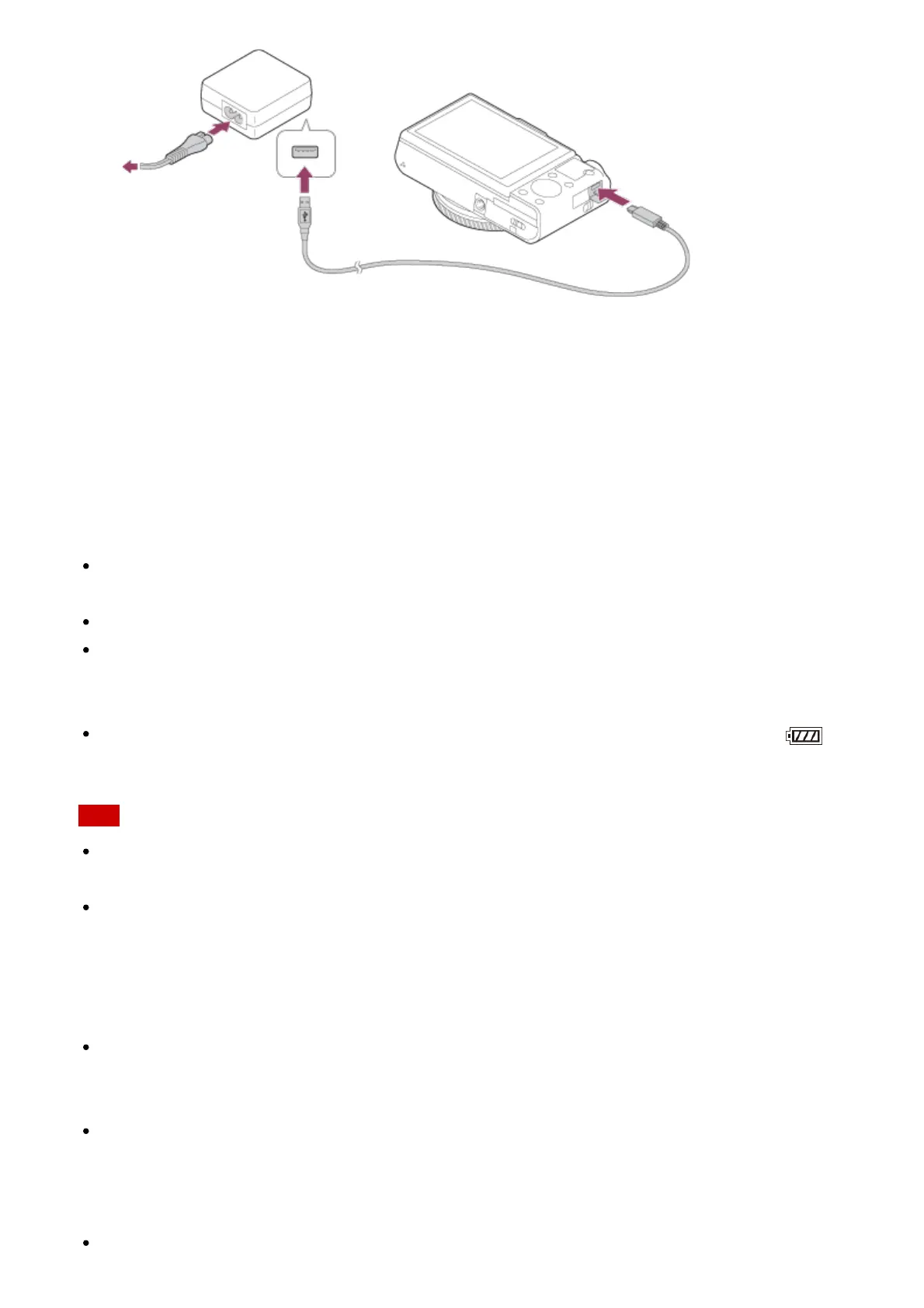 Flashing: Charging error or charging paused temporarily because the camera is not