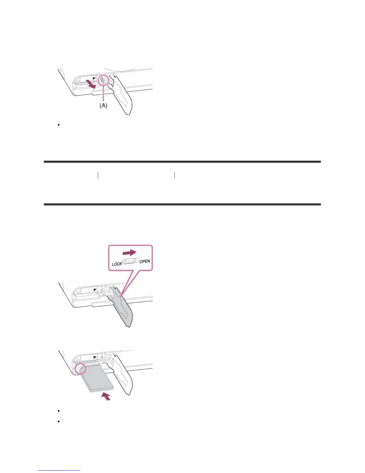 [14] How to Use Preparing the camera Inserting a memory card (sold separately)