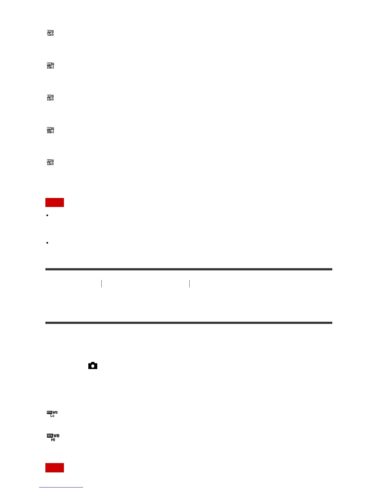 1. MENU → (Camera Settings) → [Drive Mode] → [WB bracket].
