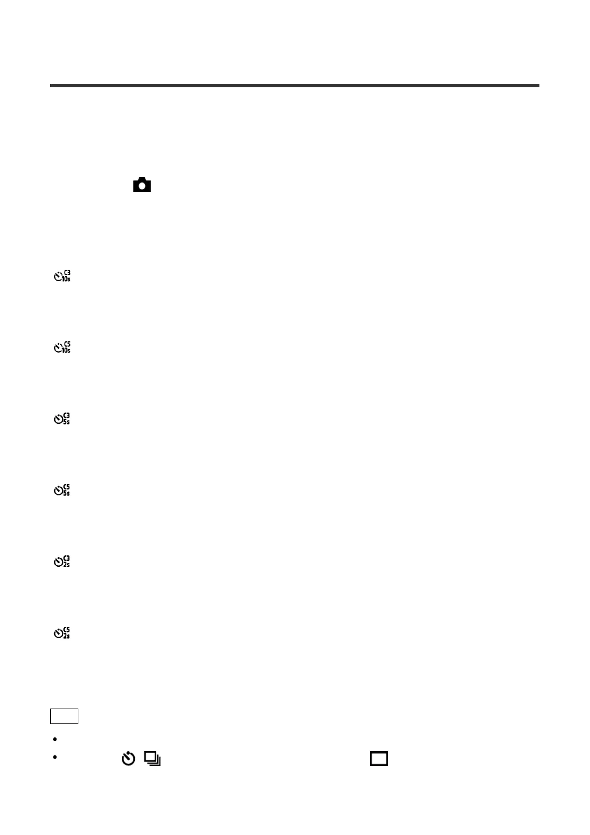 Self-timer(Cont.): 2 Sec. 5 Img.: