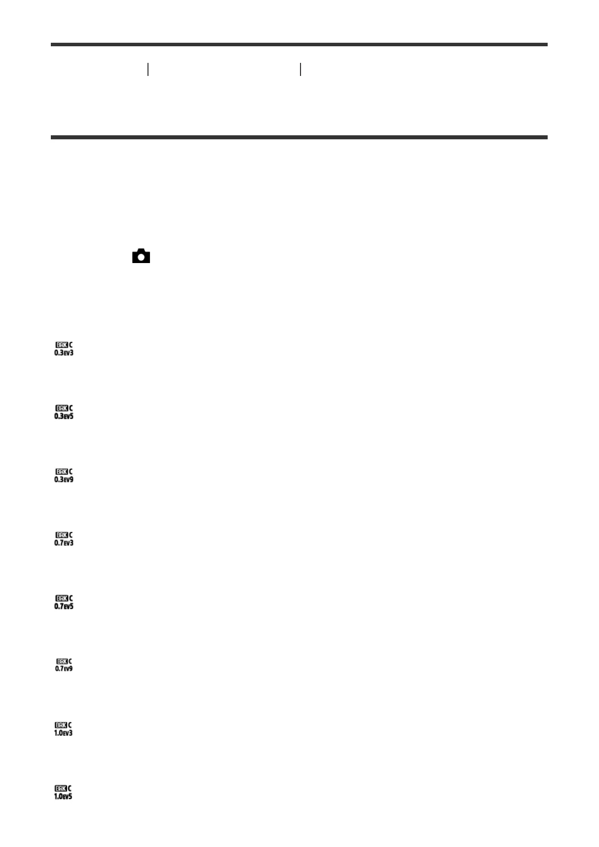 1. MENU→ (Camera Settings) → [Drive Mode] → [Cont. Bracket].