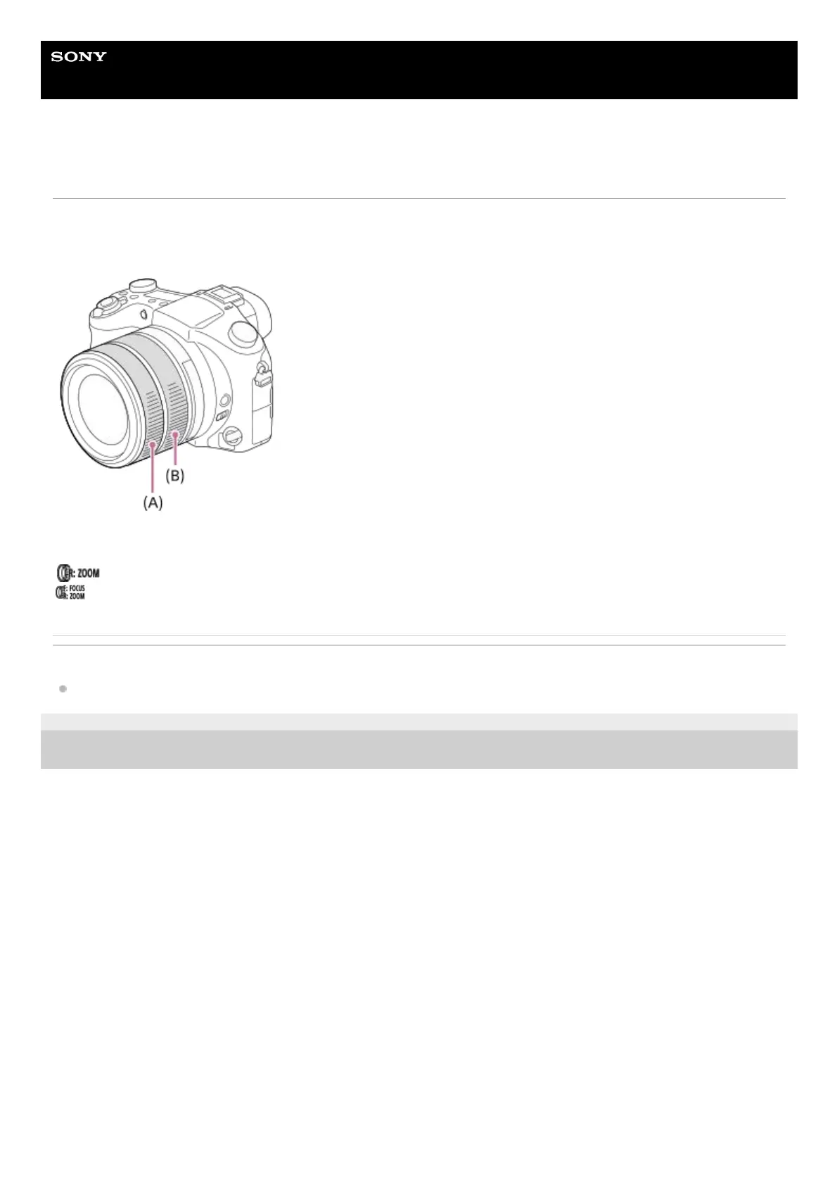 By turning the front lens ring (A) and rear lens ring (B), you can use the zoom and focus functions more intuitively. You