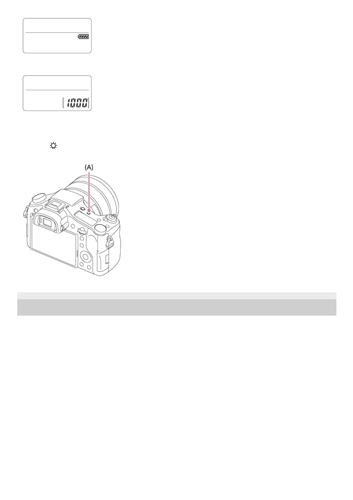 (Display panel illumination) button (A) on top of the camera. If you press the button again, the display