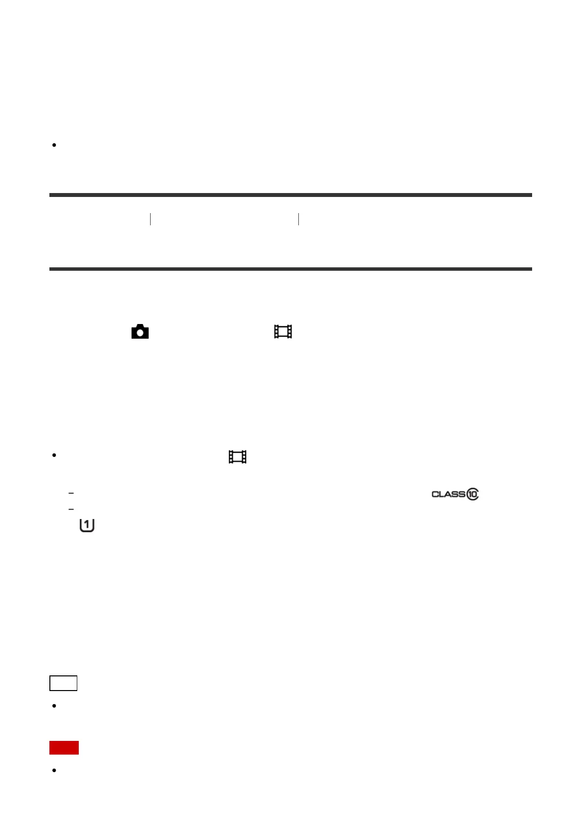 SDXC memory card with a capacity of 64 GB or more (SD Speed Class 10 ( ))