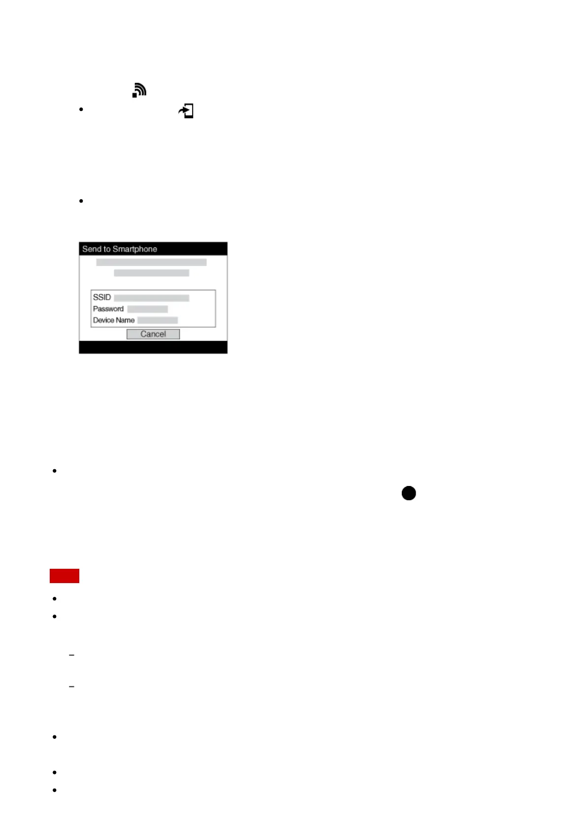1. MENU → (Wireless) → [Send to Smartphone] → desired setting.