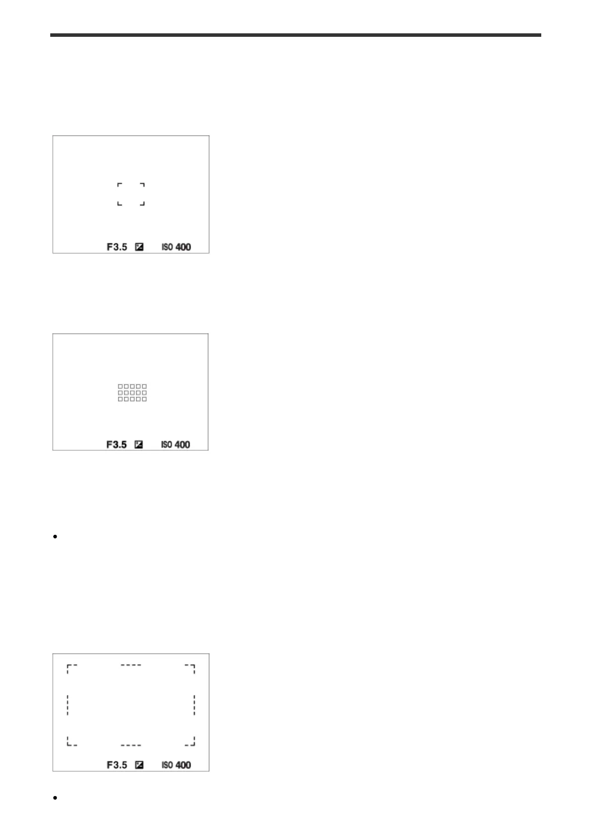 The focus range finder frame differs as follows depending on the shooting mode.