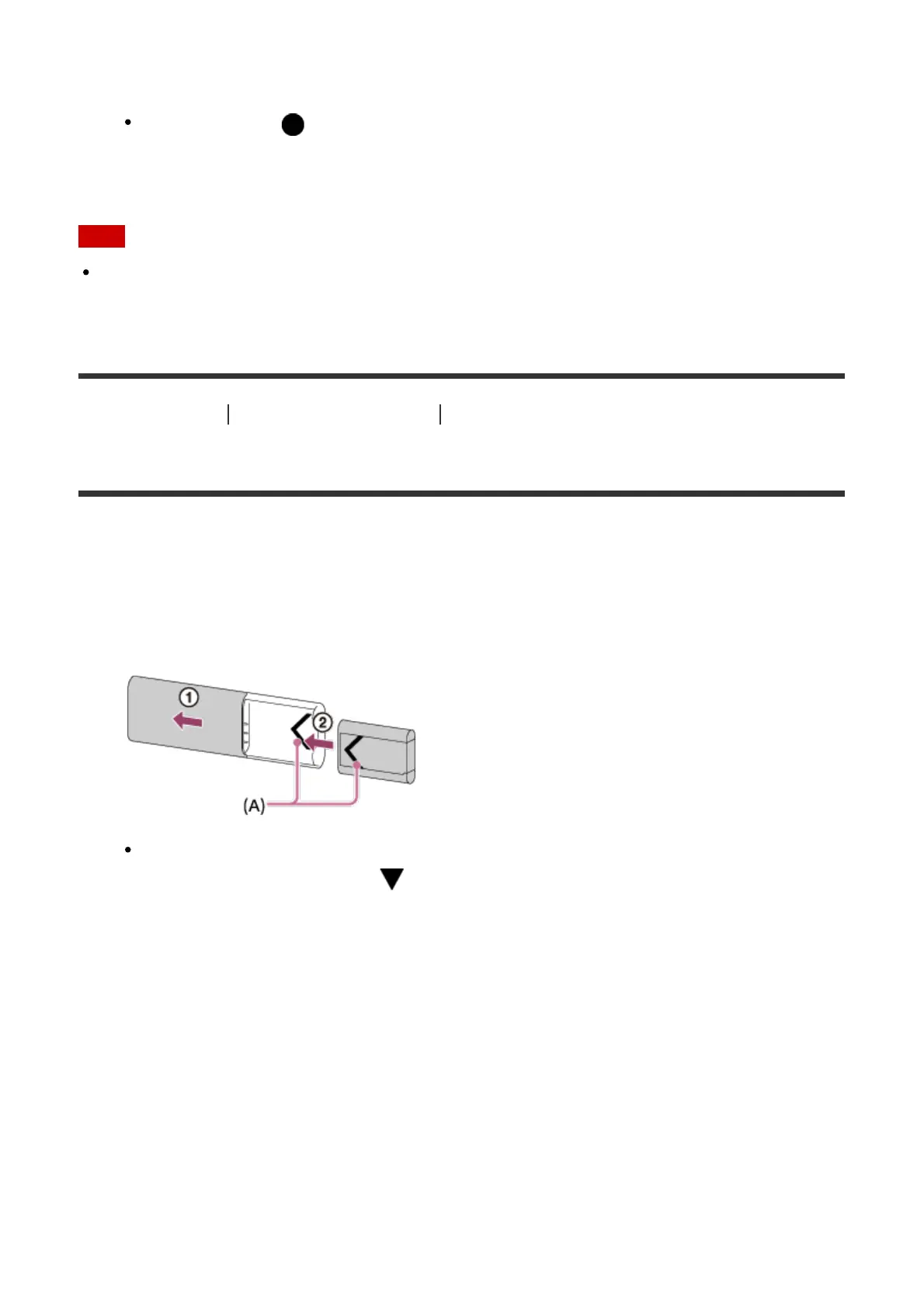 until it clicks by aligning the marks (A) on both the battery pack and the battery