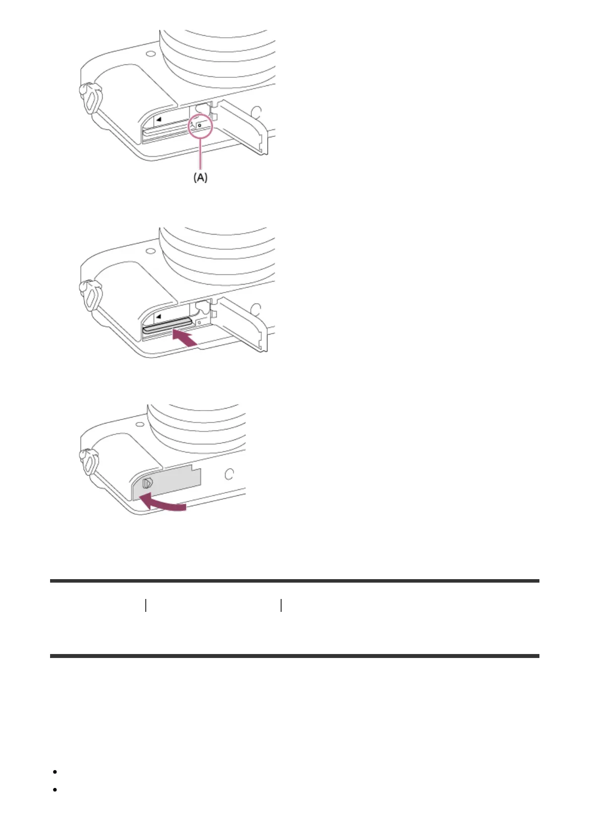 [21] How to Use Preparing the camera Inserting a memory card (sold separately)