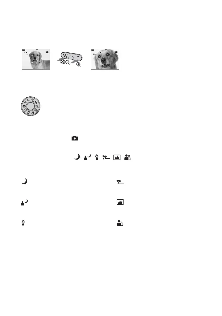 Press T (telephoto) to zoom in, or W (wide angle) to zoom out when composing your shot.