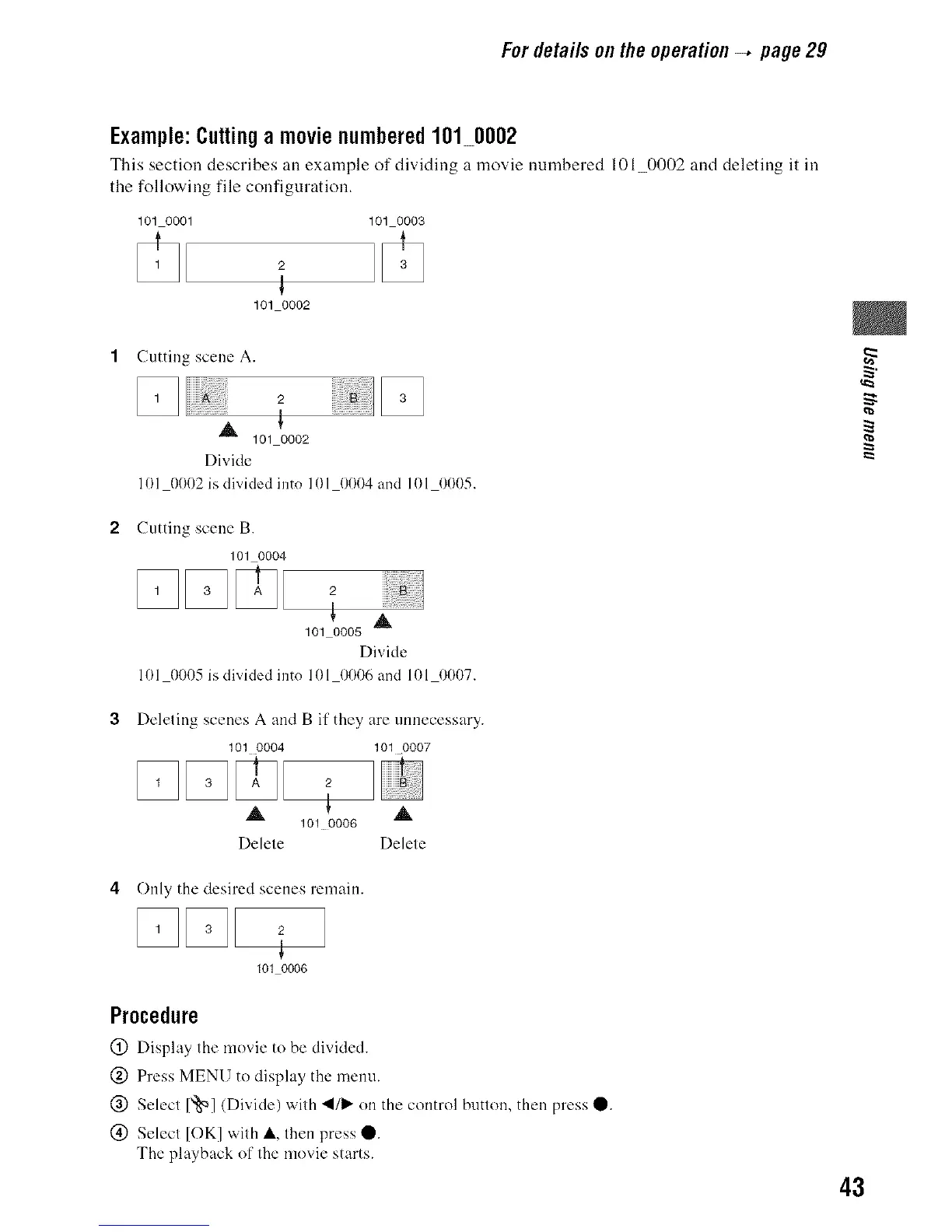 This section describes all exarnple of dividing a rnovie numbered 10l_0002 and deleting it ill