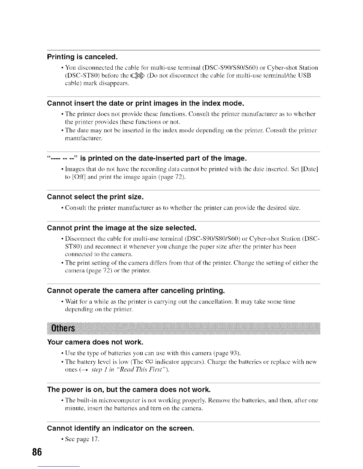 • You disconnected the cable for multi-use terminal (DSC-$90/$80/$60) or Cyber-shot Station