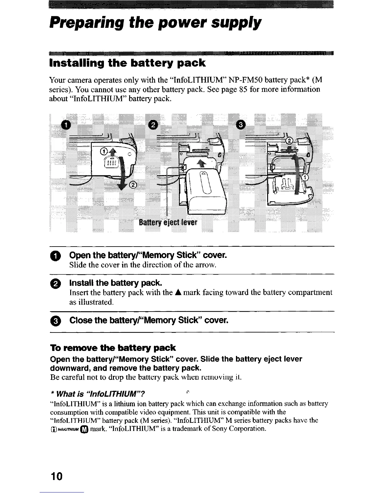 QI~IDU~HUM 0 mark. “InfoLITHIUM” is a trademark of Sony Corporation.