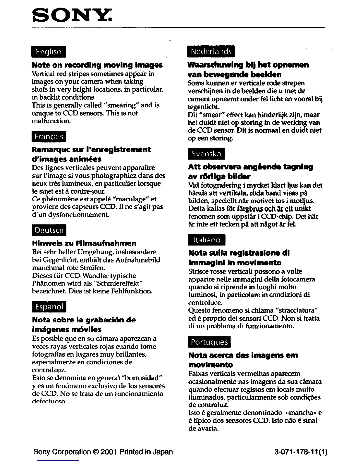 Sony Corporation 0 2001 Printed in Japan