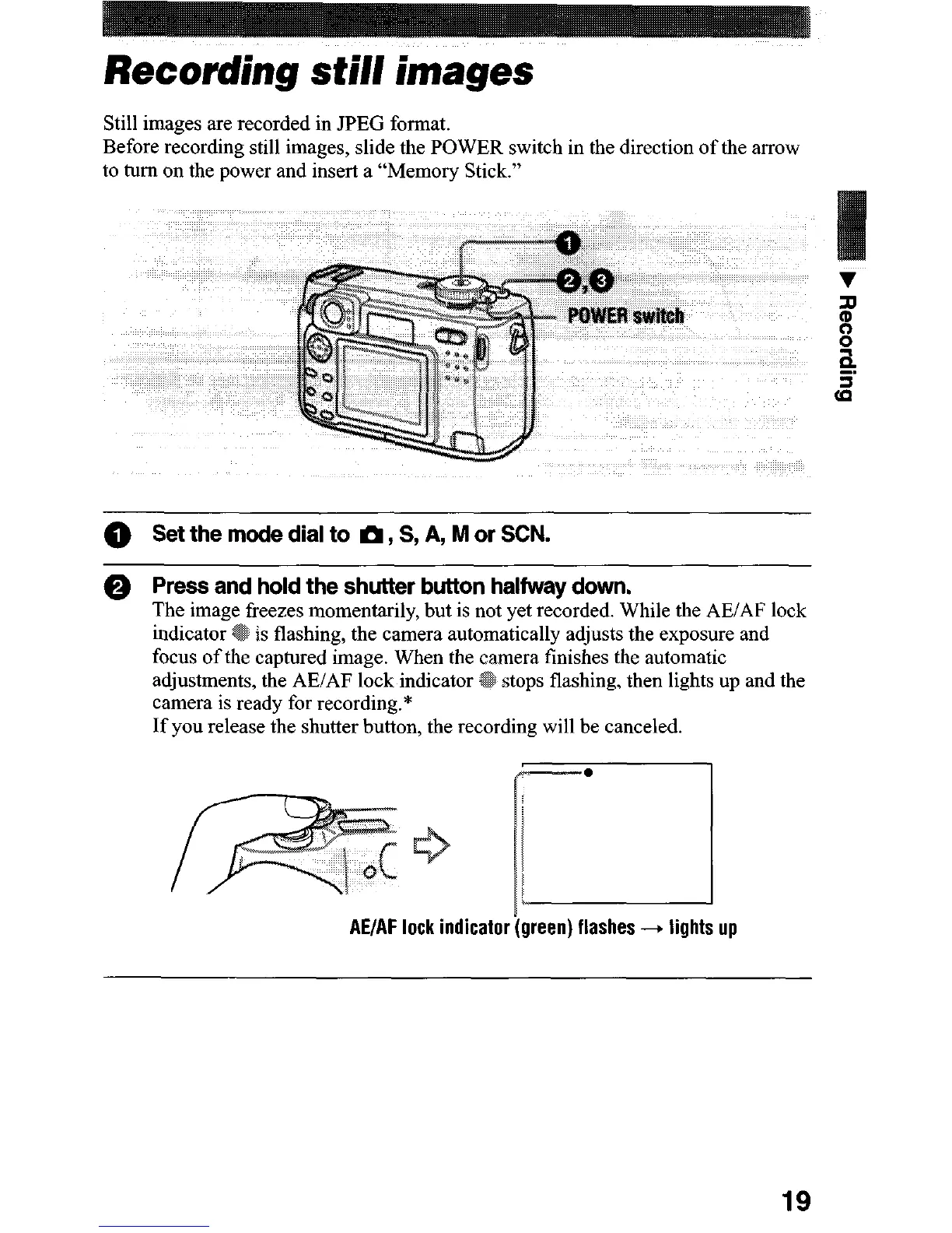 Before recording still images, slide the POWER switch in the direction of the arrow