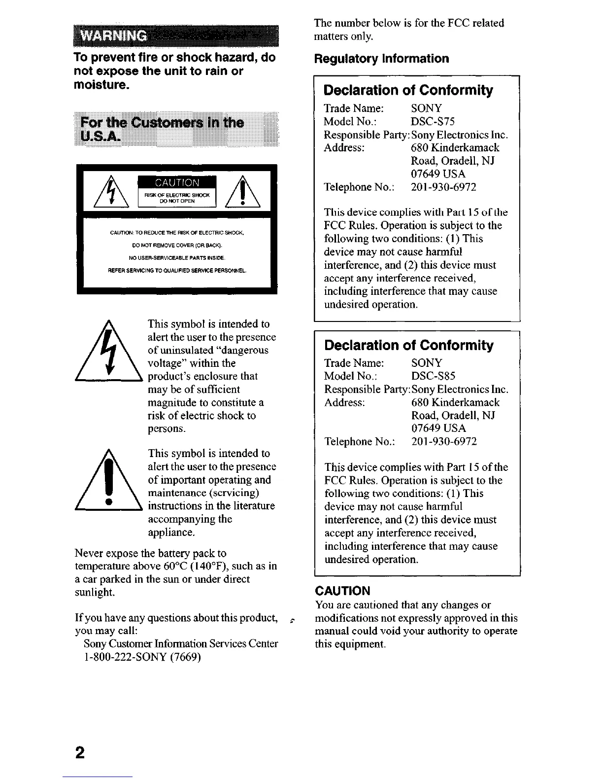 Responsible Party: Sony Electronics Inc.