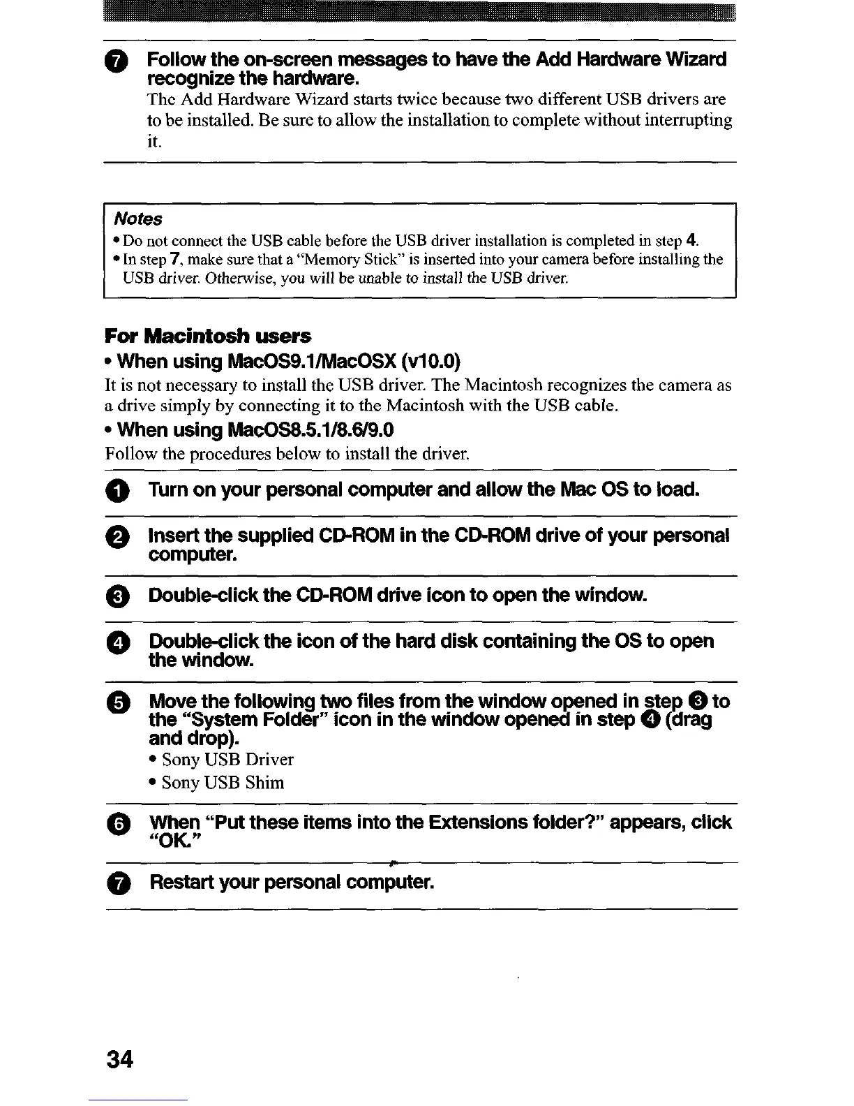 It is not necessary to install the USB driver. The Macintosh recognizes the camera as